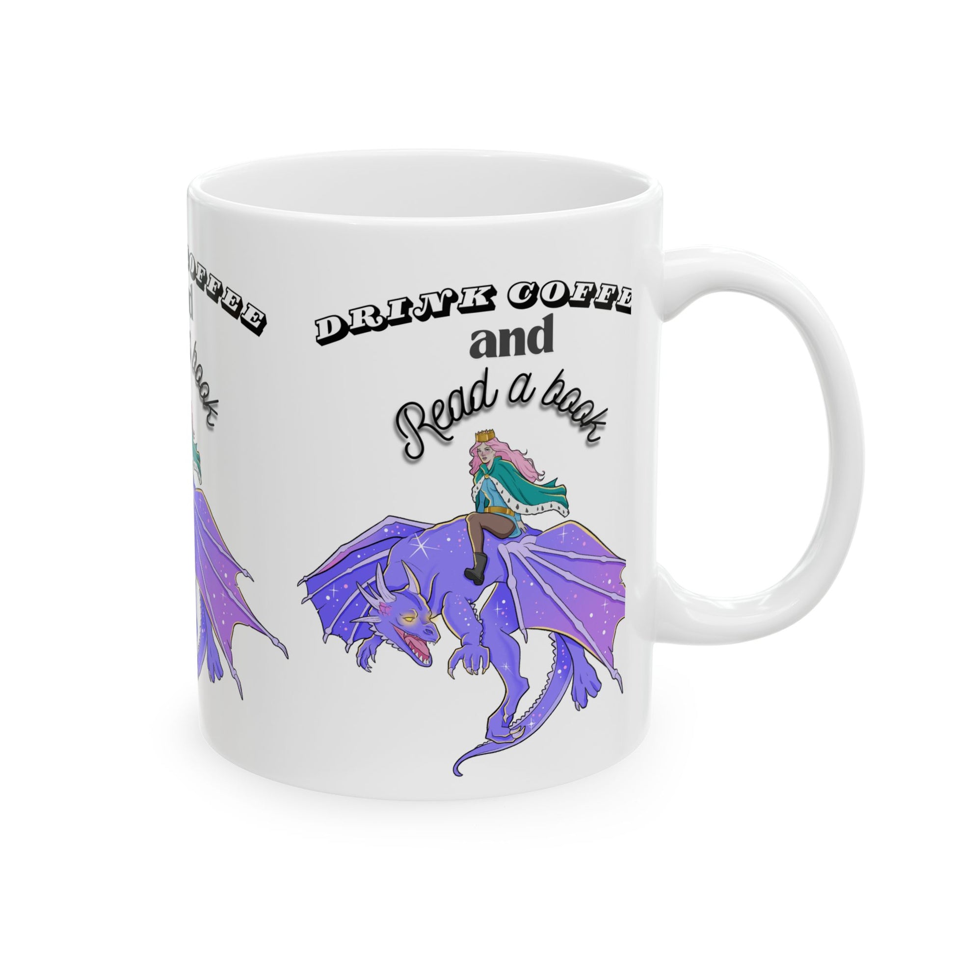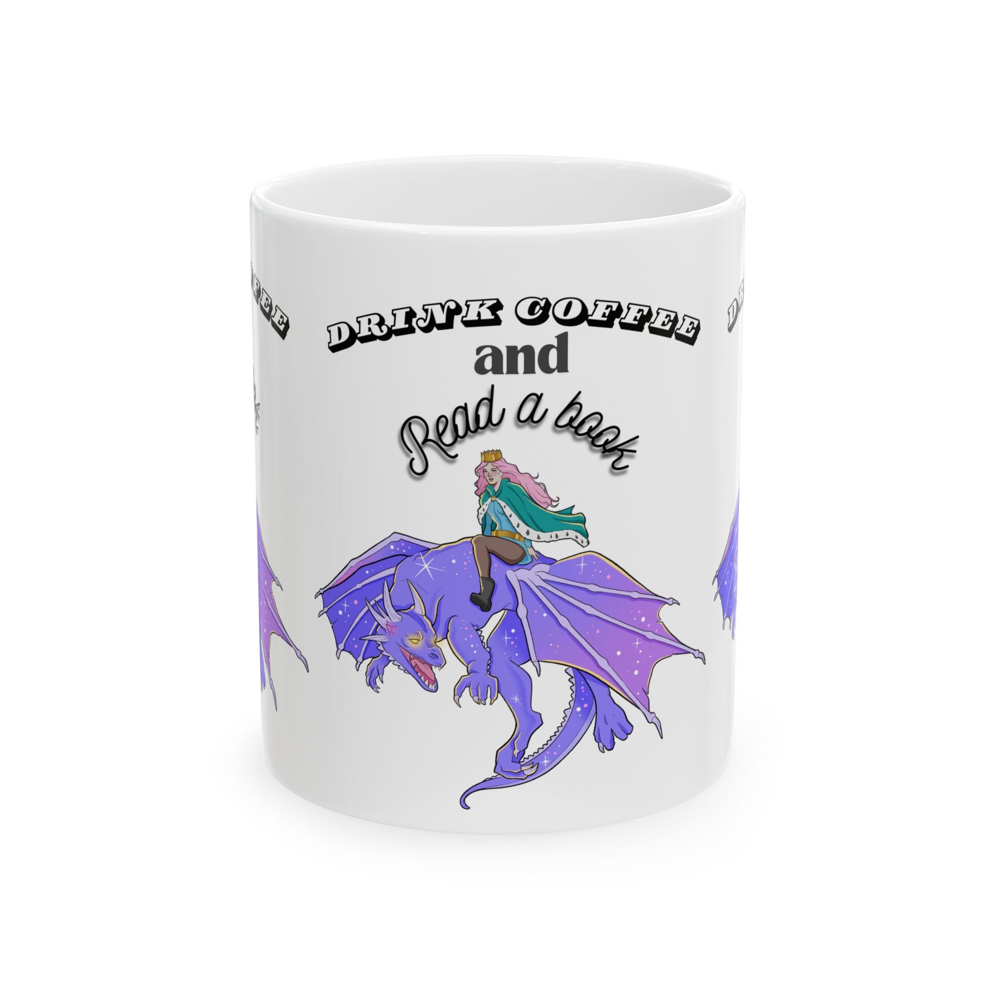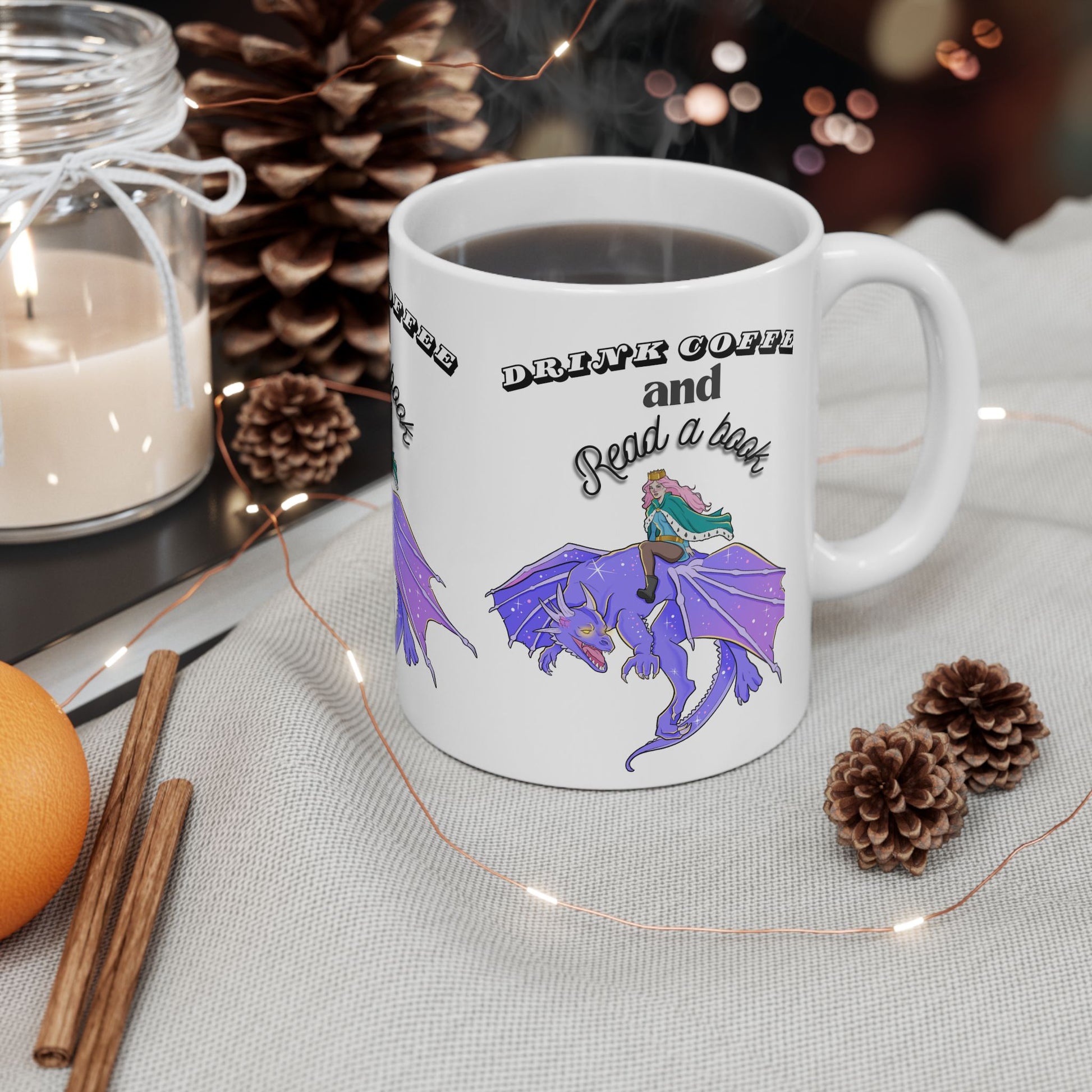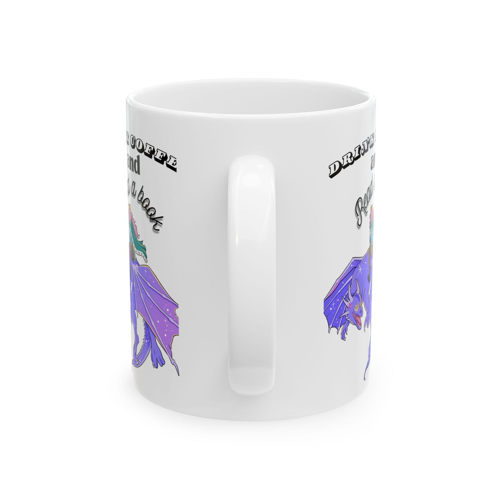 Ceramic Mug with Fantasy Design - Drink Coffee and Read a Book, Gift for Book Lovers, Fantasy Art Mug, Dragon Coffee Cup, Cozy Reading Gift