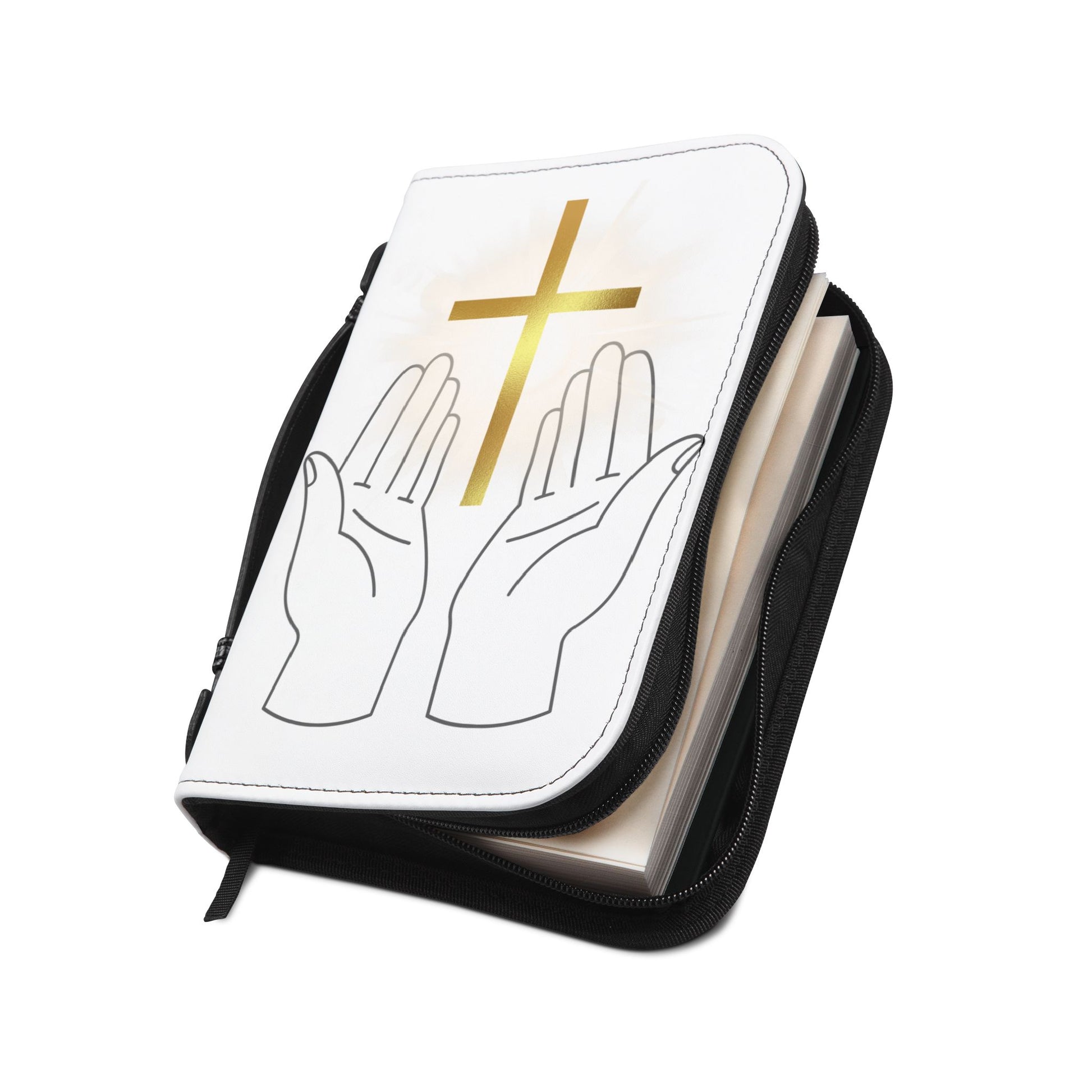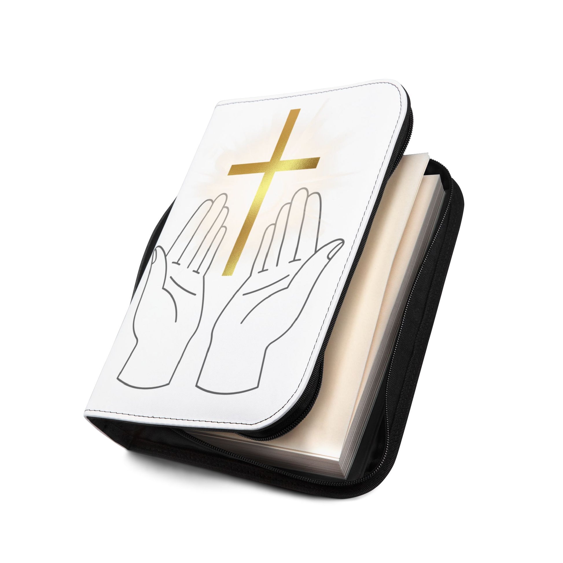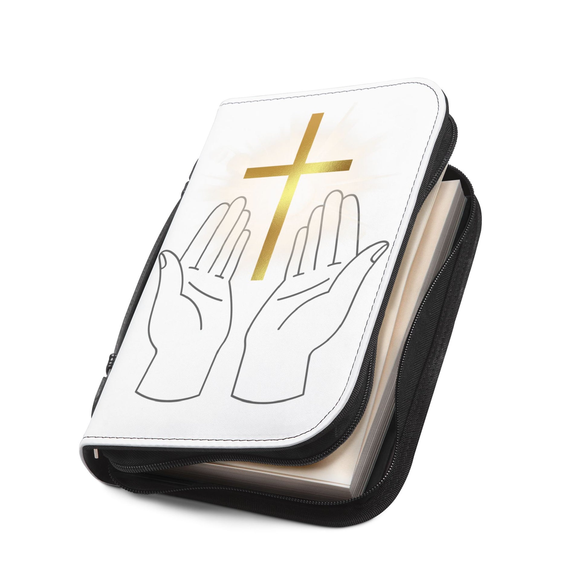 Discover the perfect blend of elegance and functionality with this Bible Cover. Crafted from high-quality 100% PU leather, it mimics the luxurious feel of genuine leather while offering durability. This Bible Cover features beautifully designed graphics with hands and a golden cross, creating a serene and uplifting atmosphere. It's designed for anyone who values their faith and wants to carry their Bible with grace. Ideal for church services, Bible study groups, or personal reflection, this cover makes a thoughtful gift for religious celebrations, holidays like Easter and Christmas, or any special occasion.