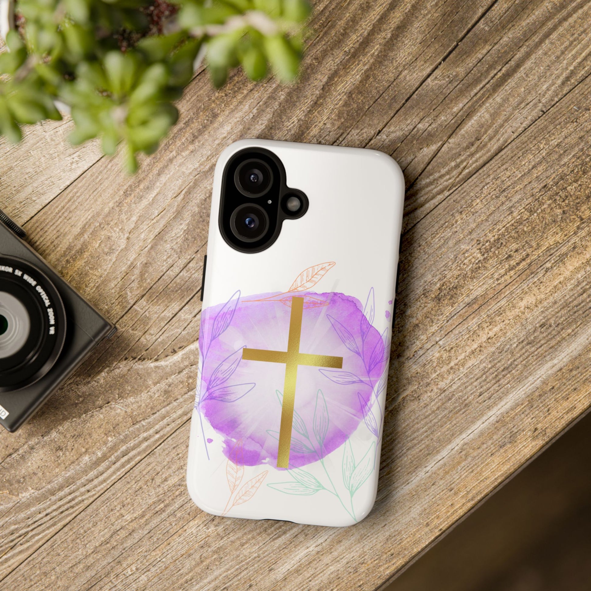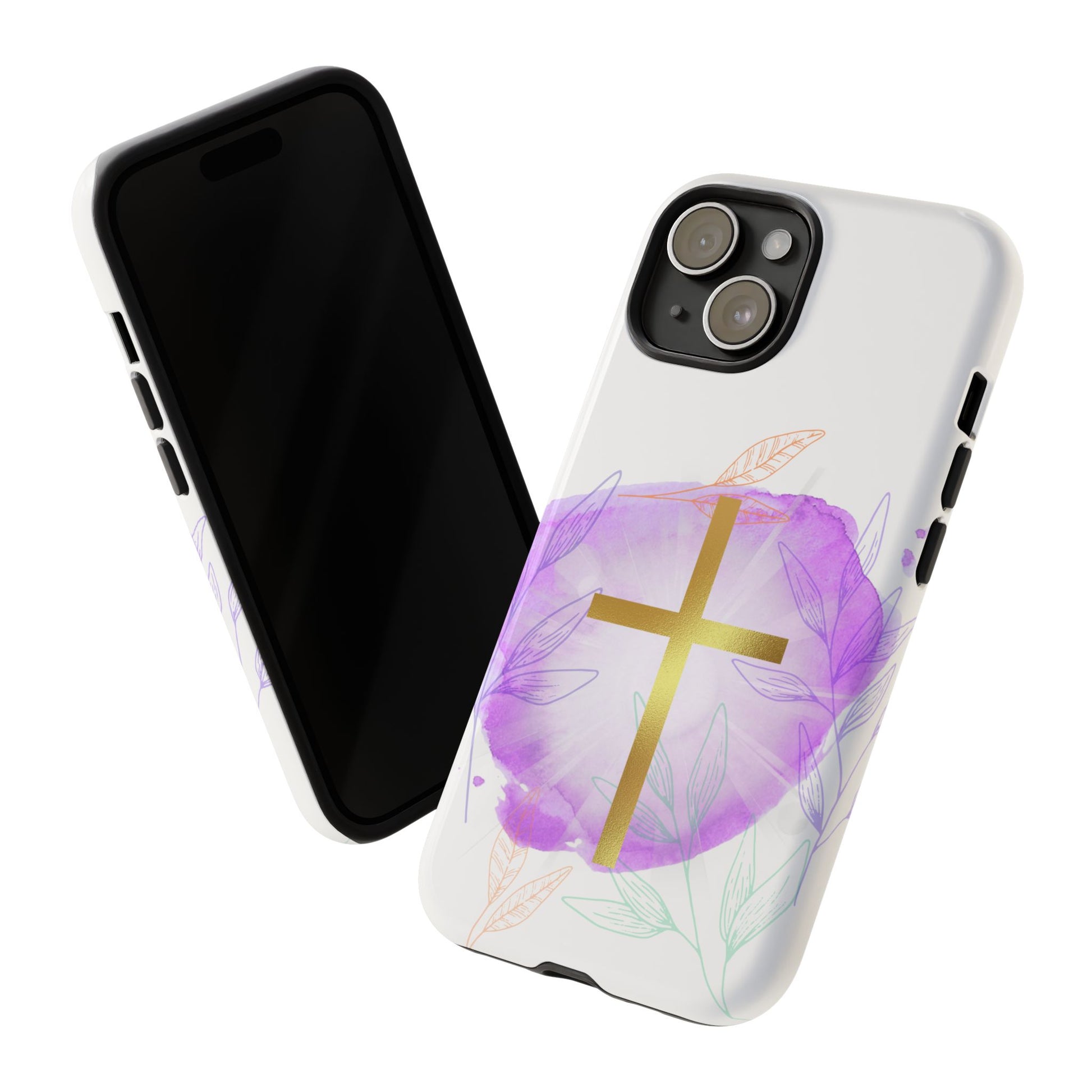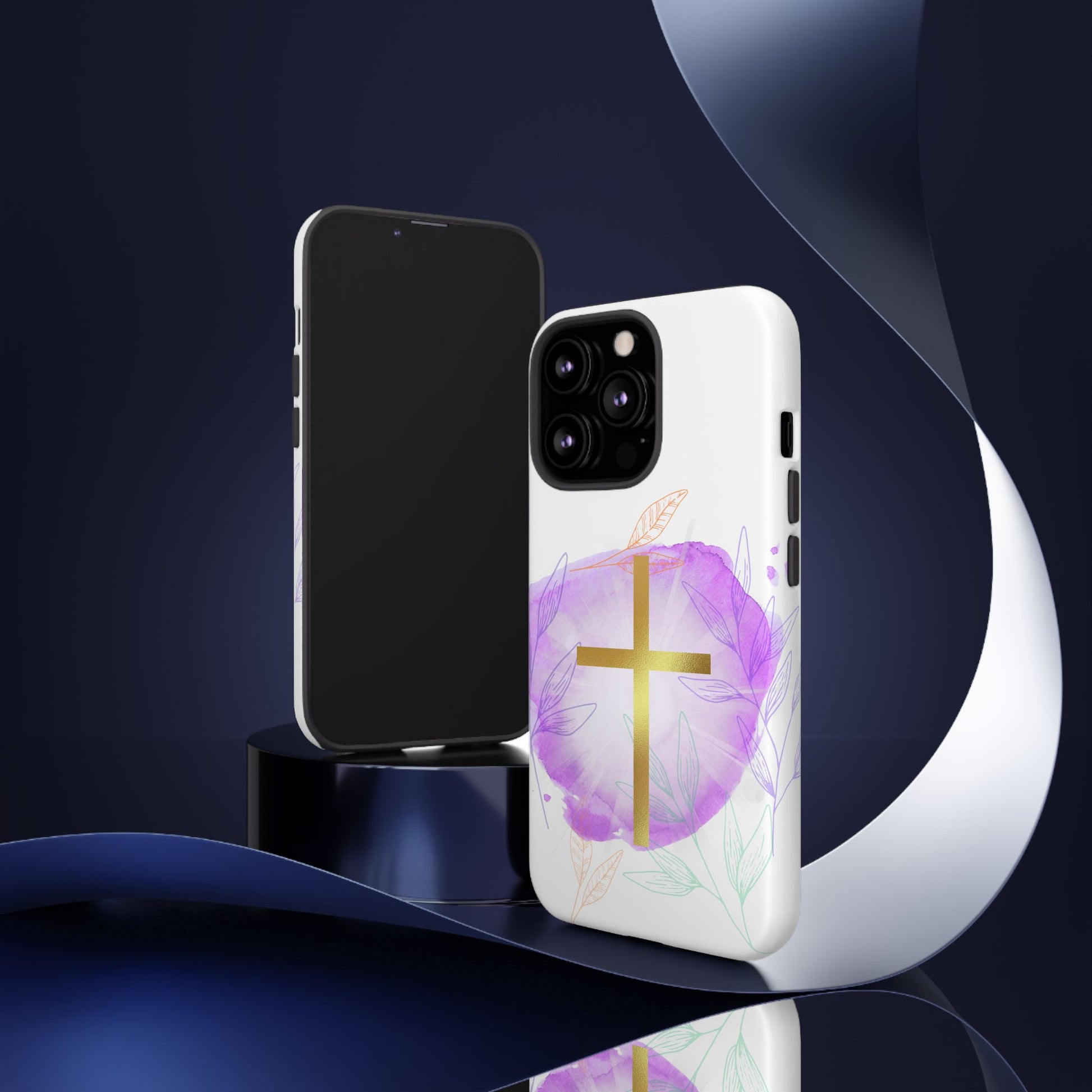 Protect your phone with style and elegance using this durable phone case, designed to make a statement while providing top-notch protection. The beautiful design, featuring soft floral elements and a golden cross, radiates a serene vibe, perfect for those looking to express their faith and appreciation for nature. Ideal for anyone who values functionality and aesthetics in their accessories, this phone case makes a thoughtful gift for friends and family members during holidays, such as Christmas, Easter, and birthdays. It's perfect for daily use or special occasions, ensuring that your device stays safe while you showcase your personal style.