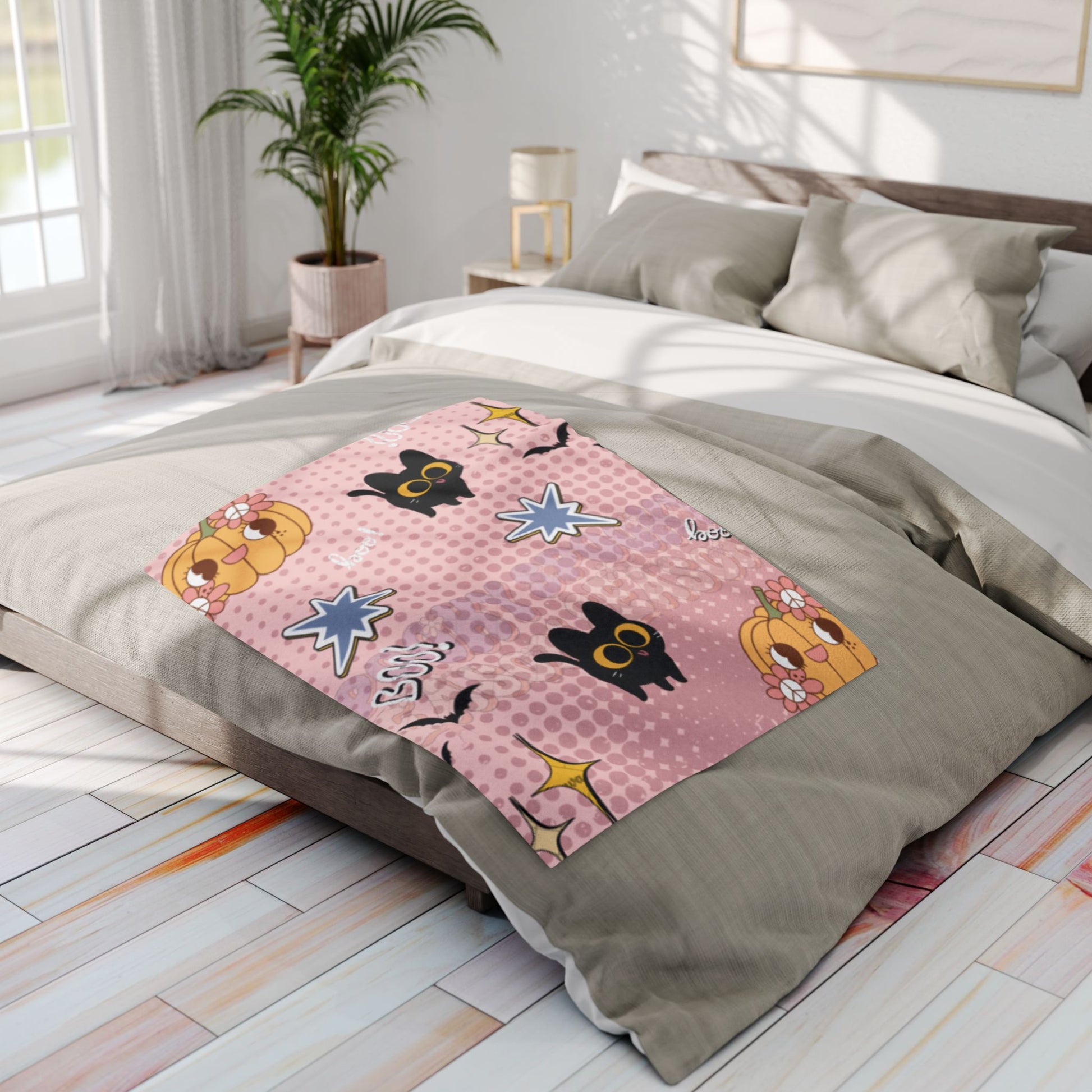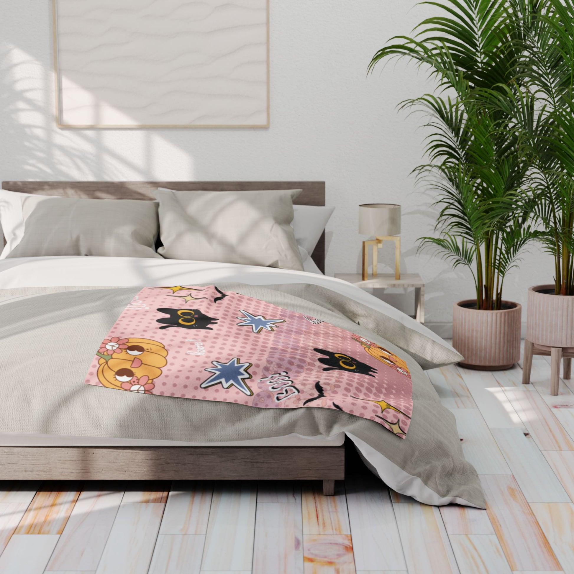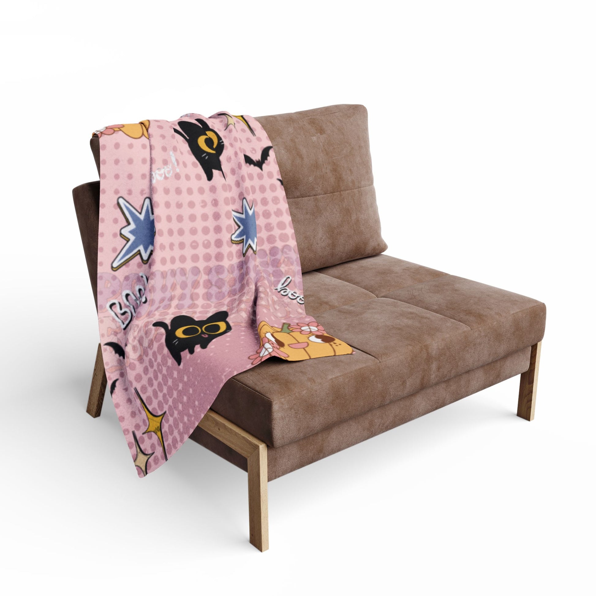 Cozy Halloween Cat Blanket, Fleece Throw for Autumn Decor, Cute Cat and Pumpkin Design, Perfect for Spooky Season, Gift for Cat Lovers