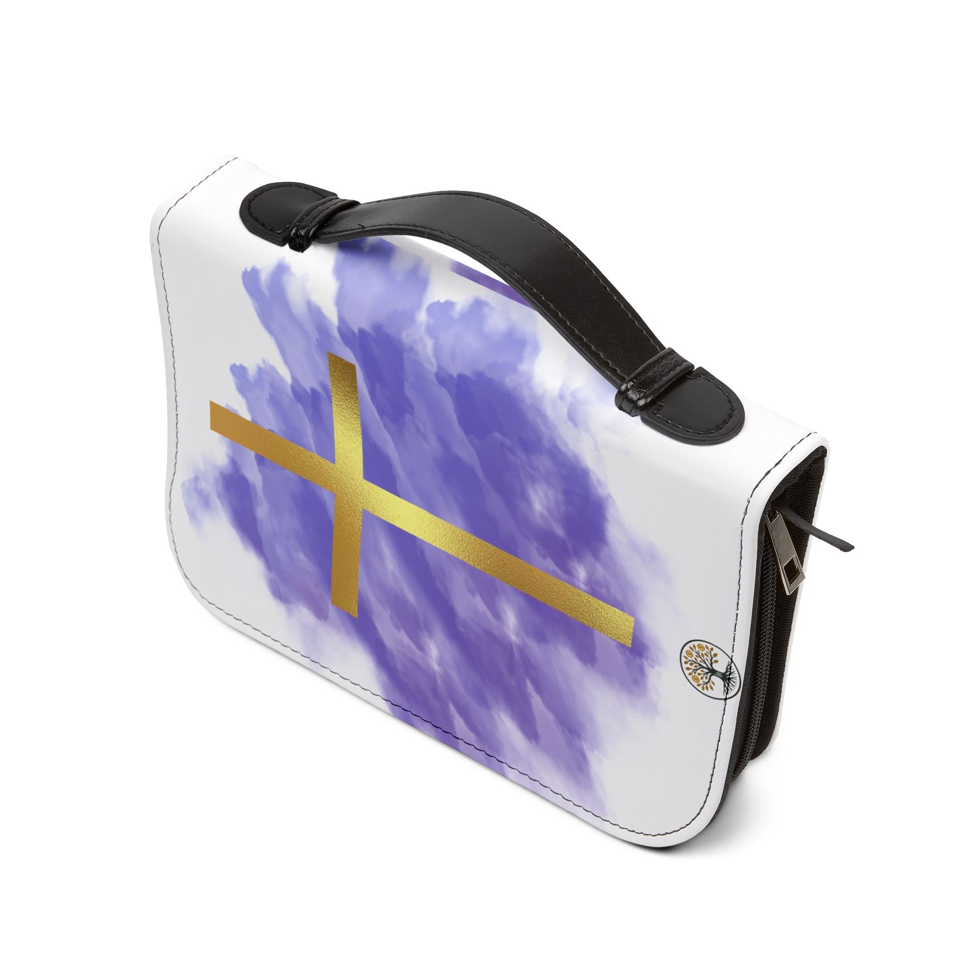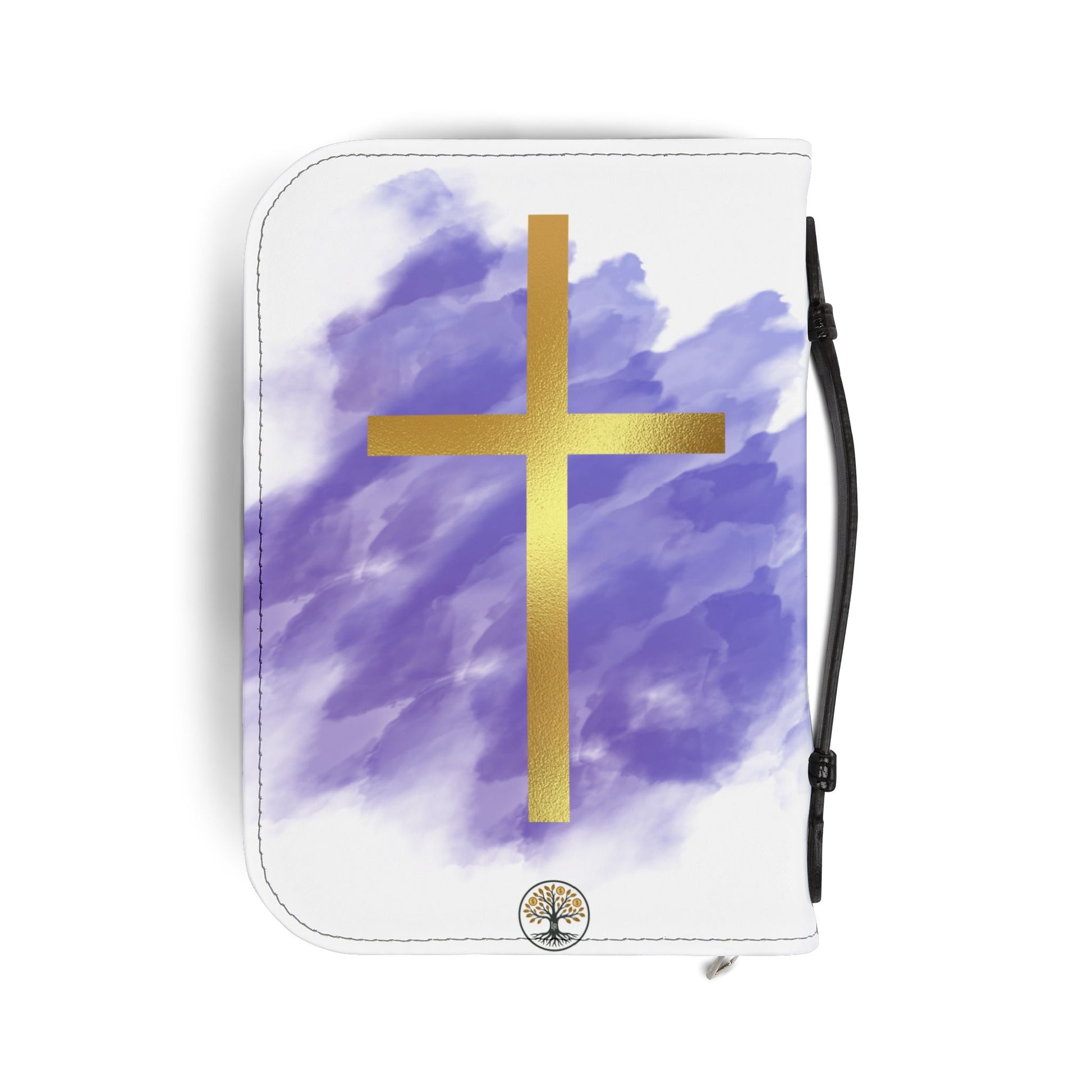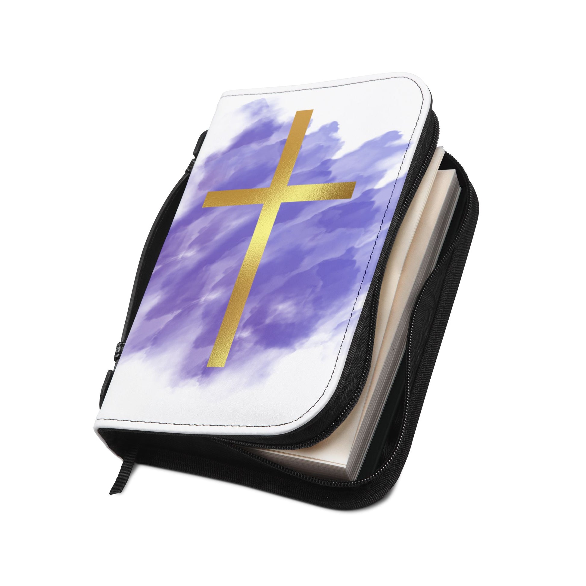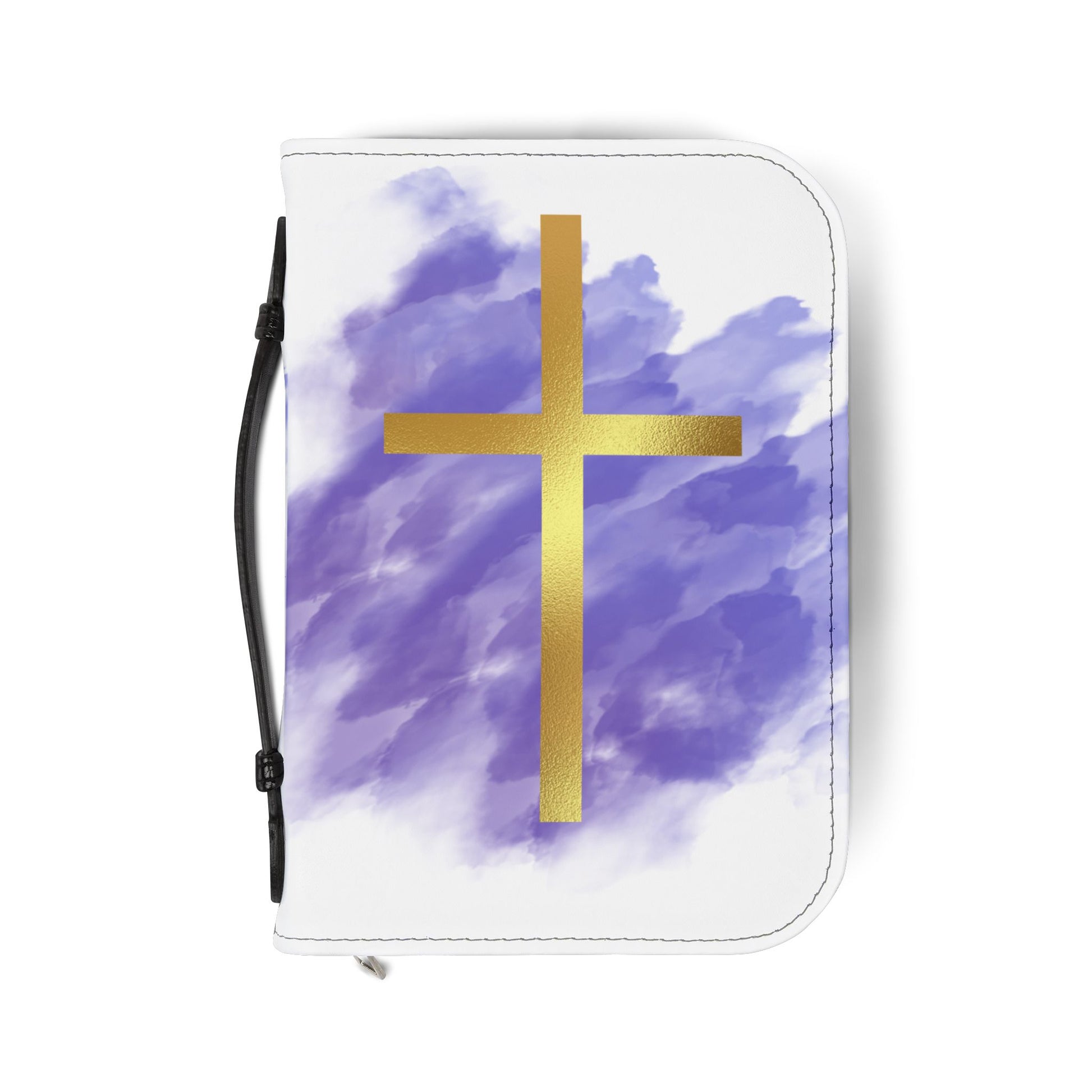 Elevate your daily faith journey with this beautifully crafted Bible cover. Made from luxurious 100% PU leather, it embodies the elegance of genuine leather while offering durability and ease of care. This cover, adorned with a striking gold cross design against a vibrant purple backdrop, brings a serene and uplifting feel to your spiritual practice. Perfect for church, study groups, or personal devotion time, it makes an ideal gift for anyone passionate about their faith. Whether it's for Christmas, Easter, or a special occasion such as a baptism or confirmation, this Bible cover will be cherished for years to come.