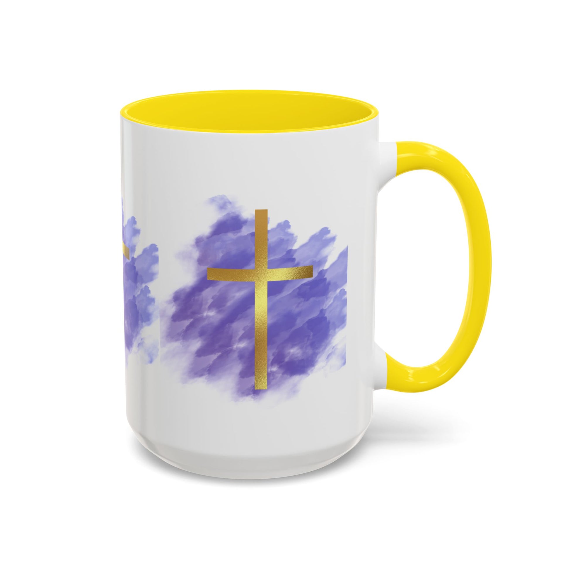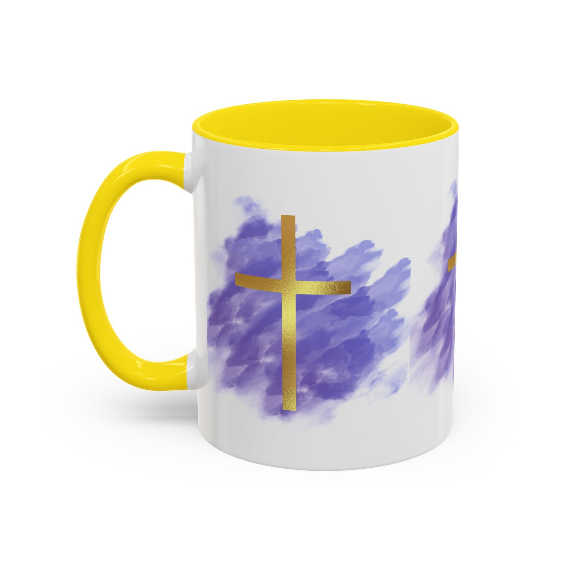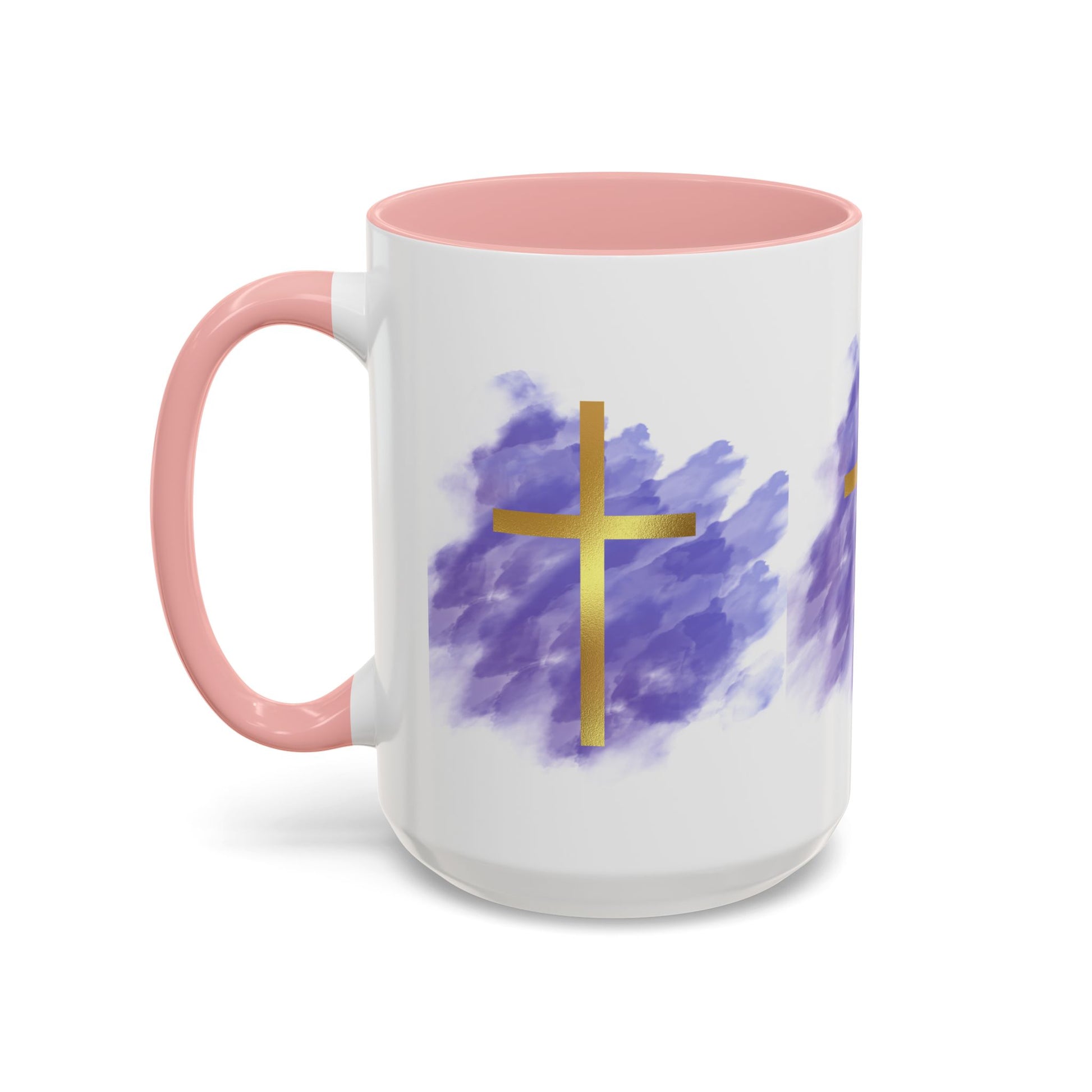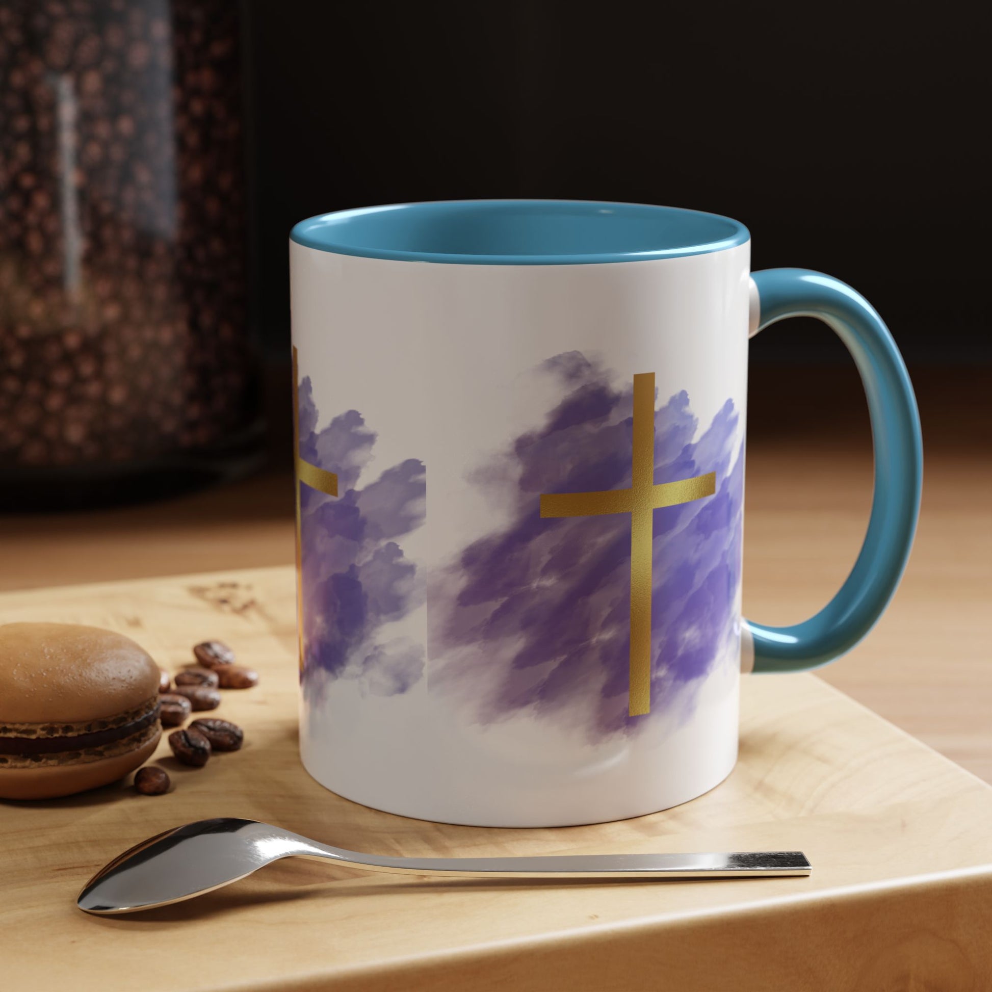 Faith-Inspired Accent Coffee Mug with Golden Cross, Religious Gift for Friends and Family, 11oz 15oz, Inspirational Church Mug, [...]