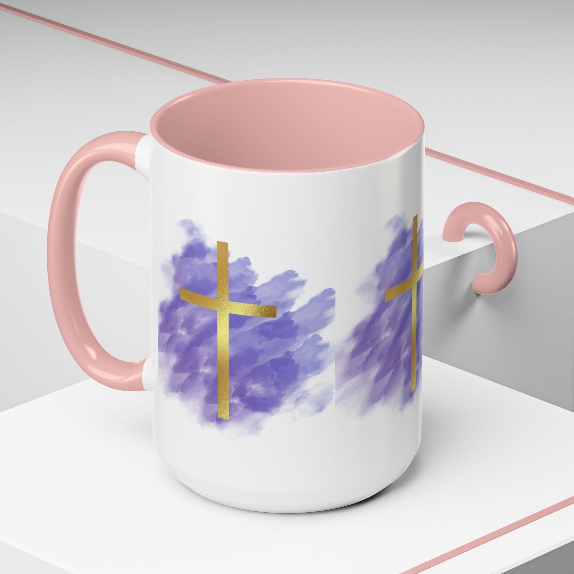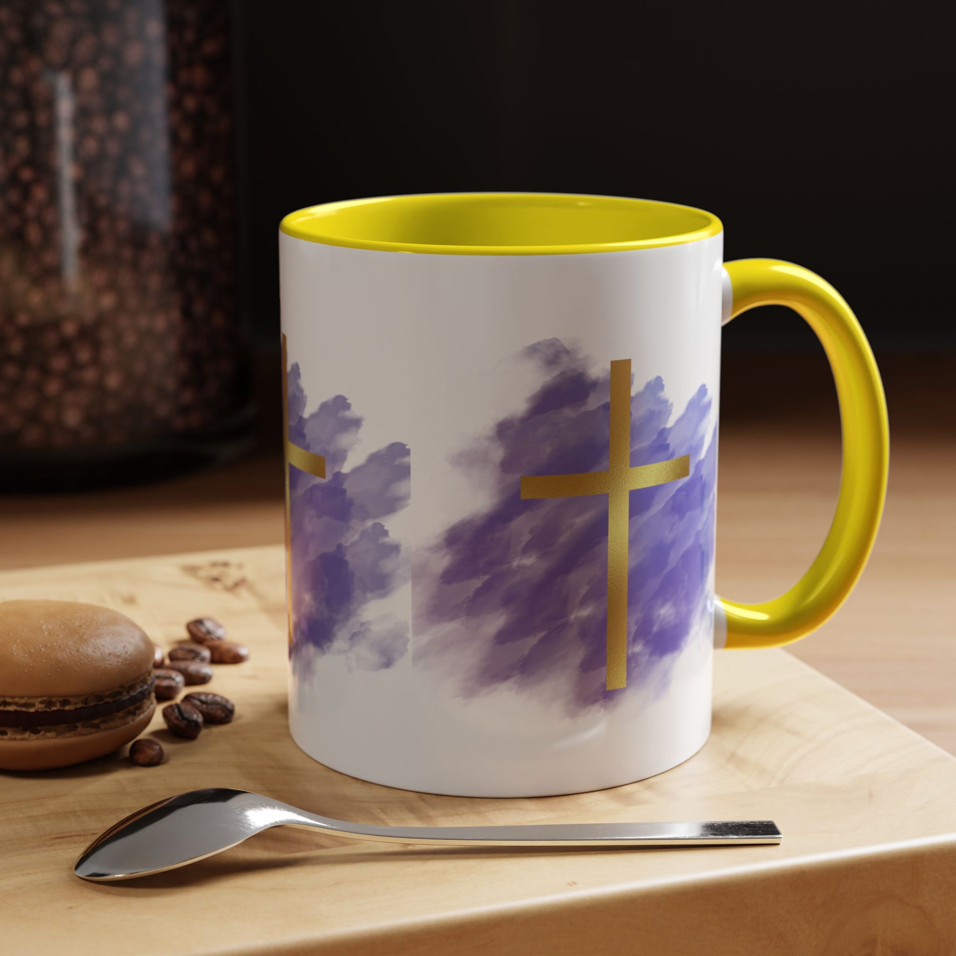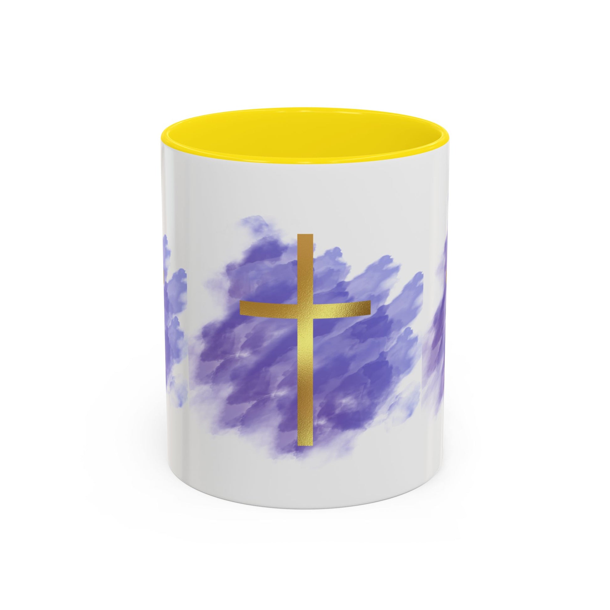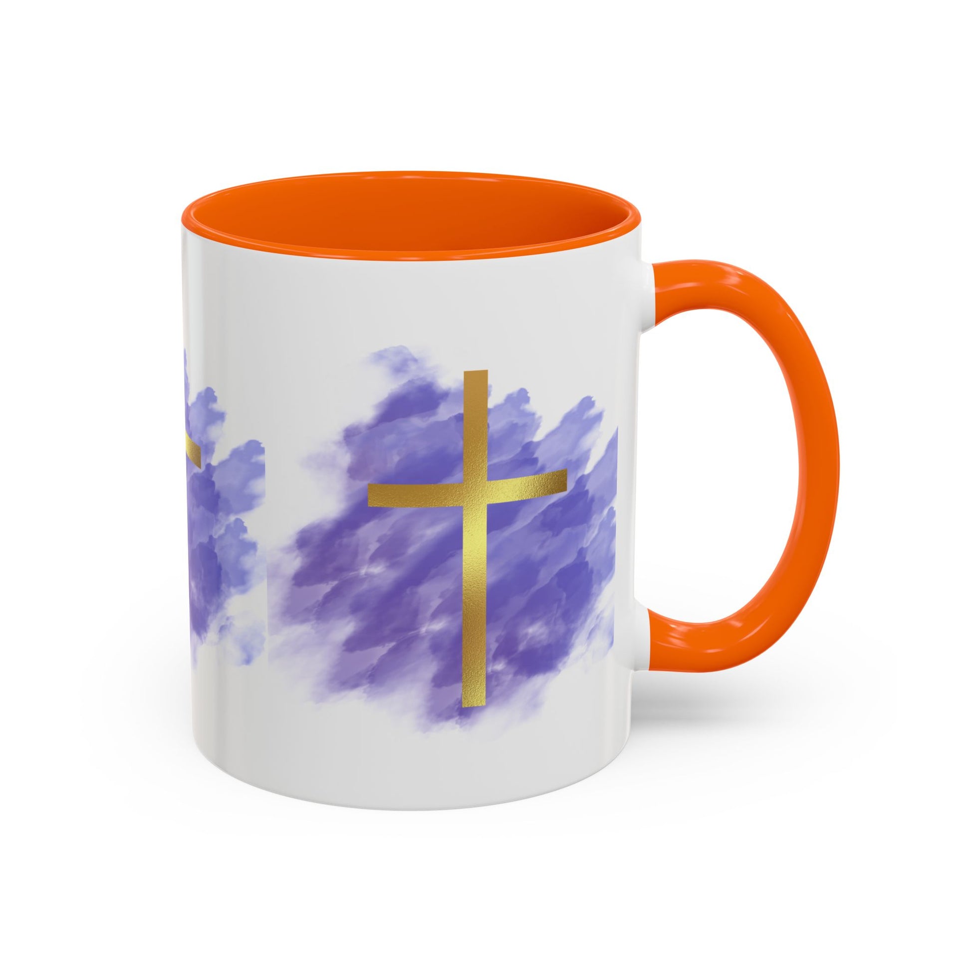 Faith-Inspired Accent Coffee Mug with Golden Cross, Religious Gift for Friends and Family, 11oz 15oz, Inspirational Church Mug, [...]