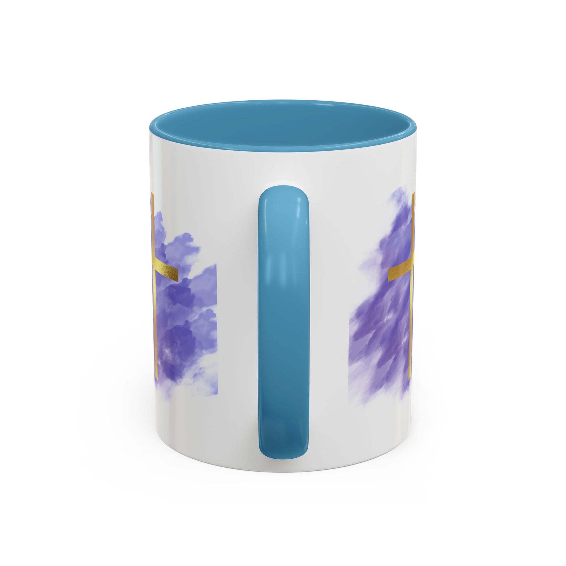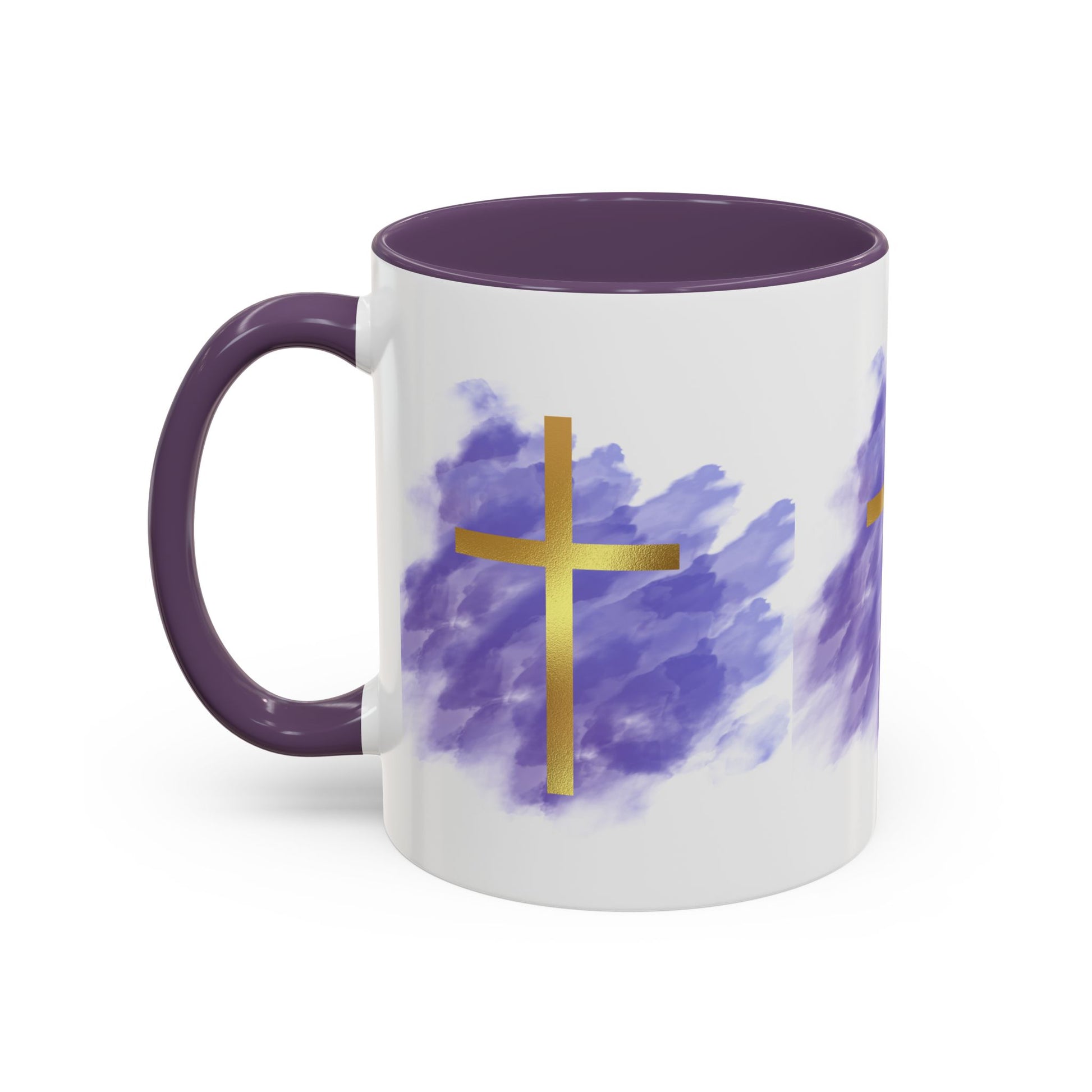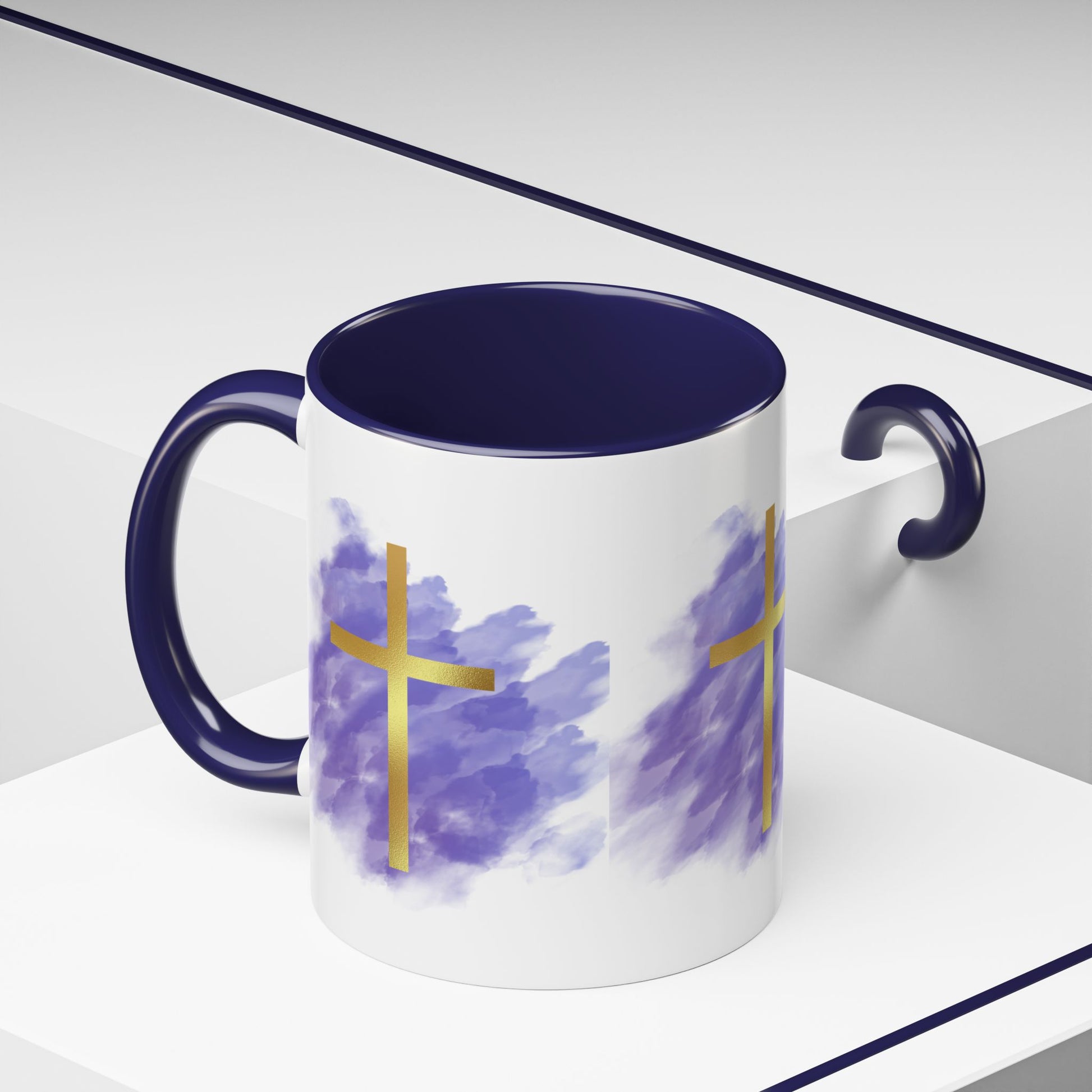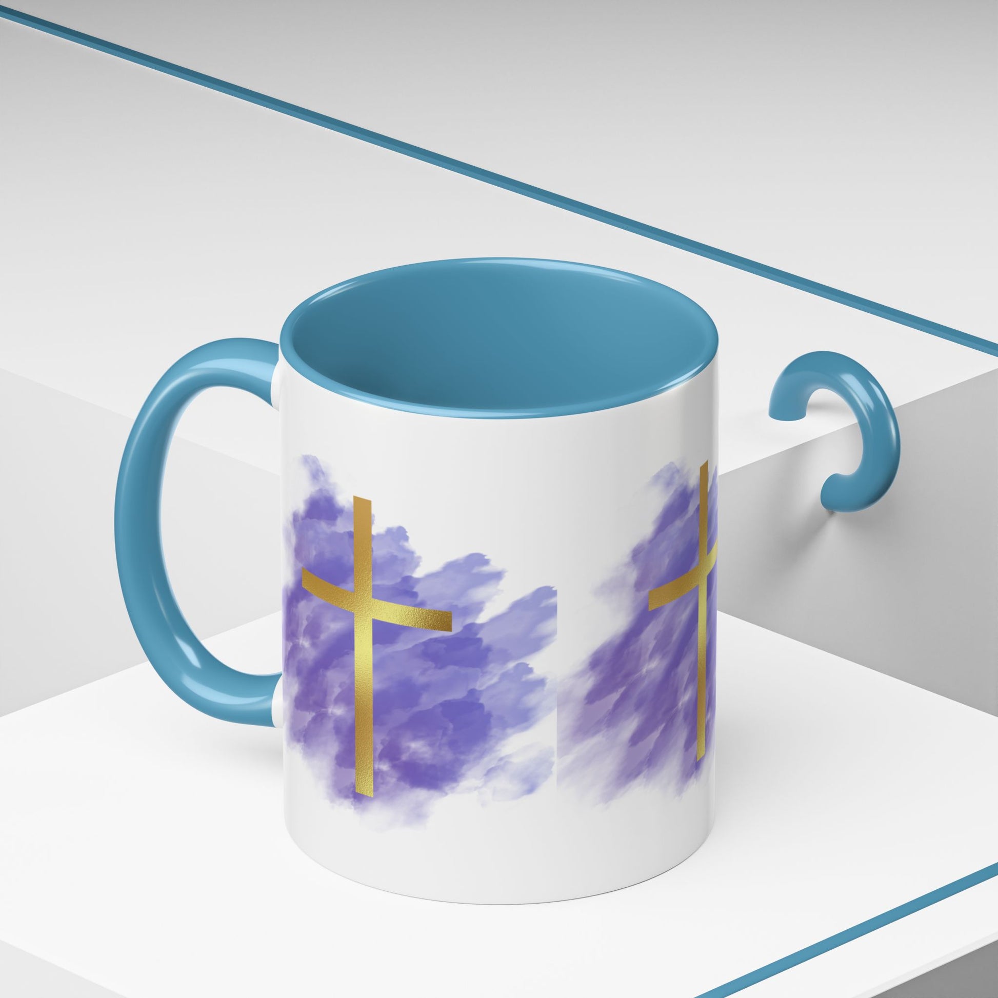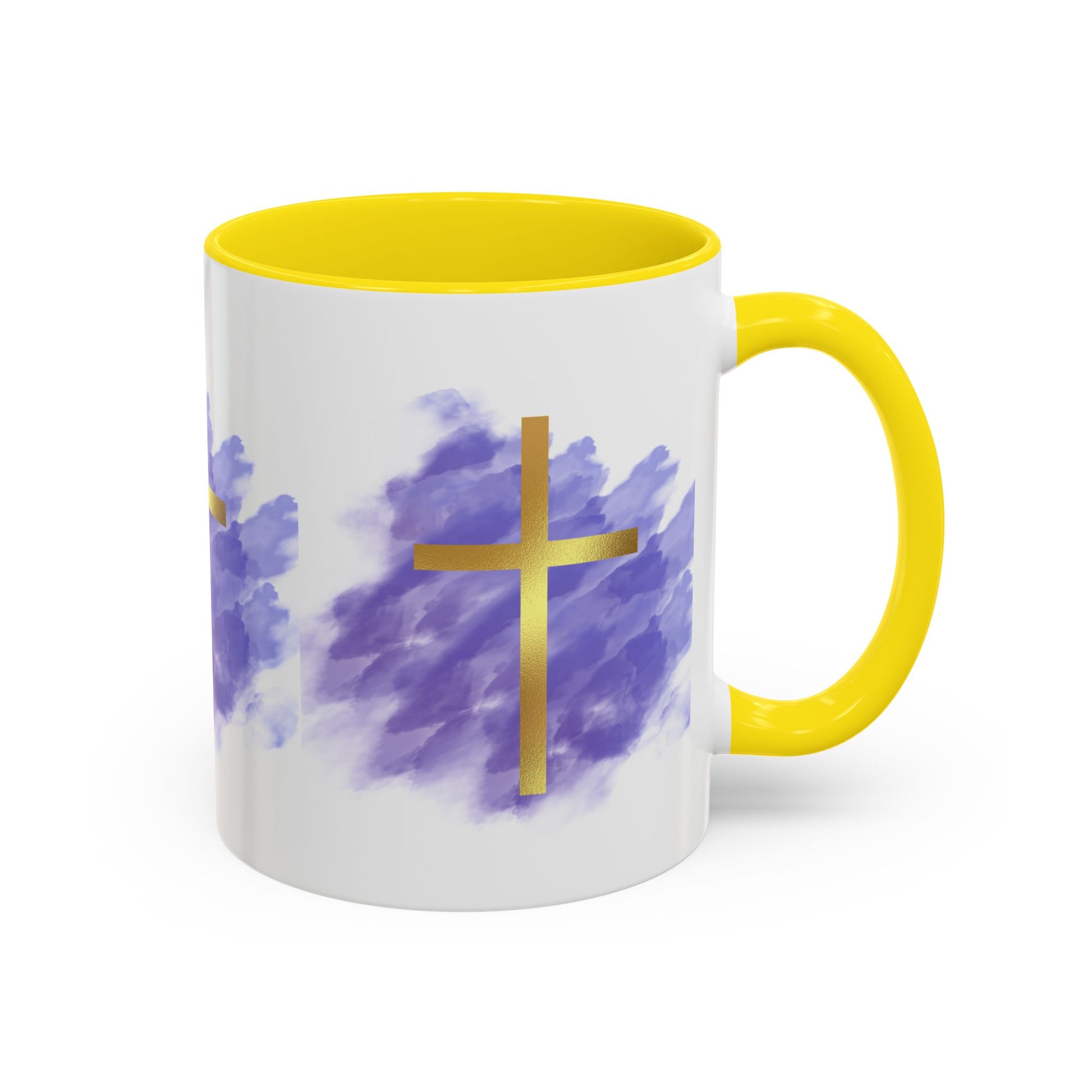 Faith-Inspired Accent Coffee Mug with Golden Cross, Religious Gift for Friends and Family, 11oz 15oz, Inspirational Church Mug, [...]