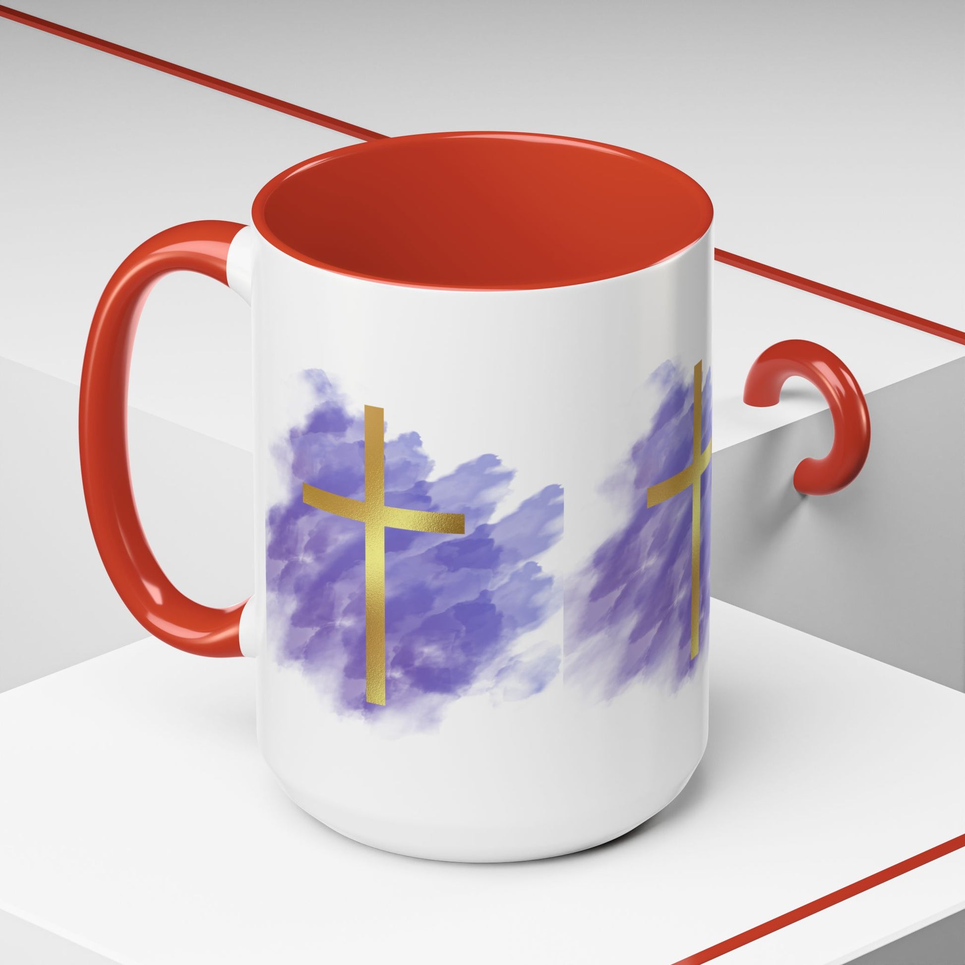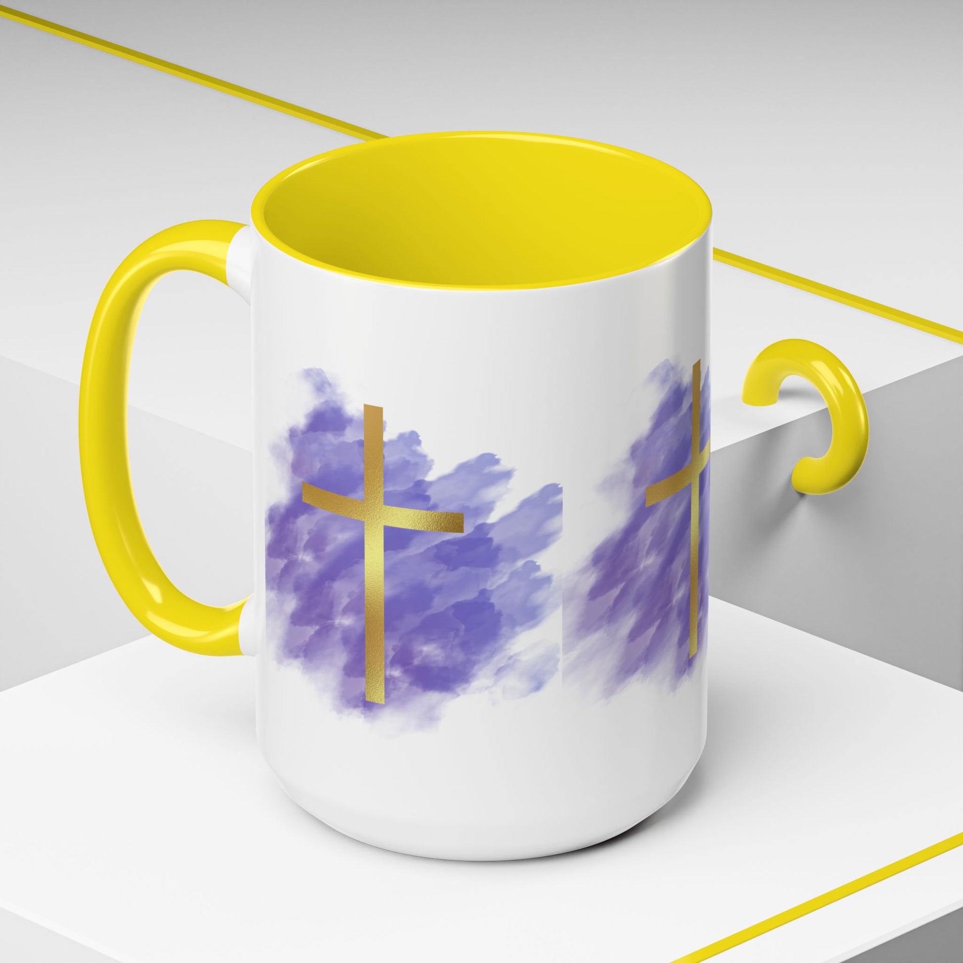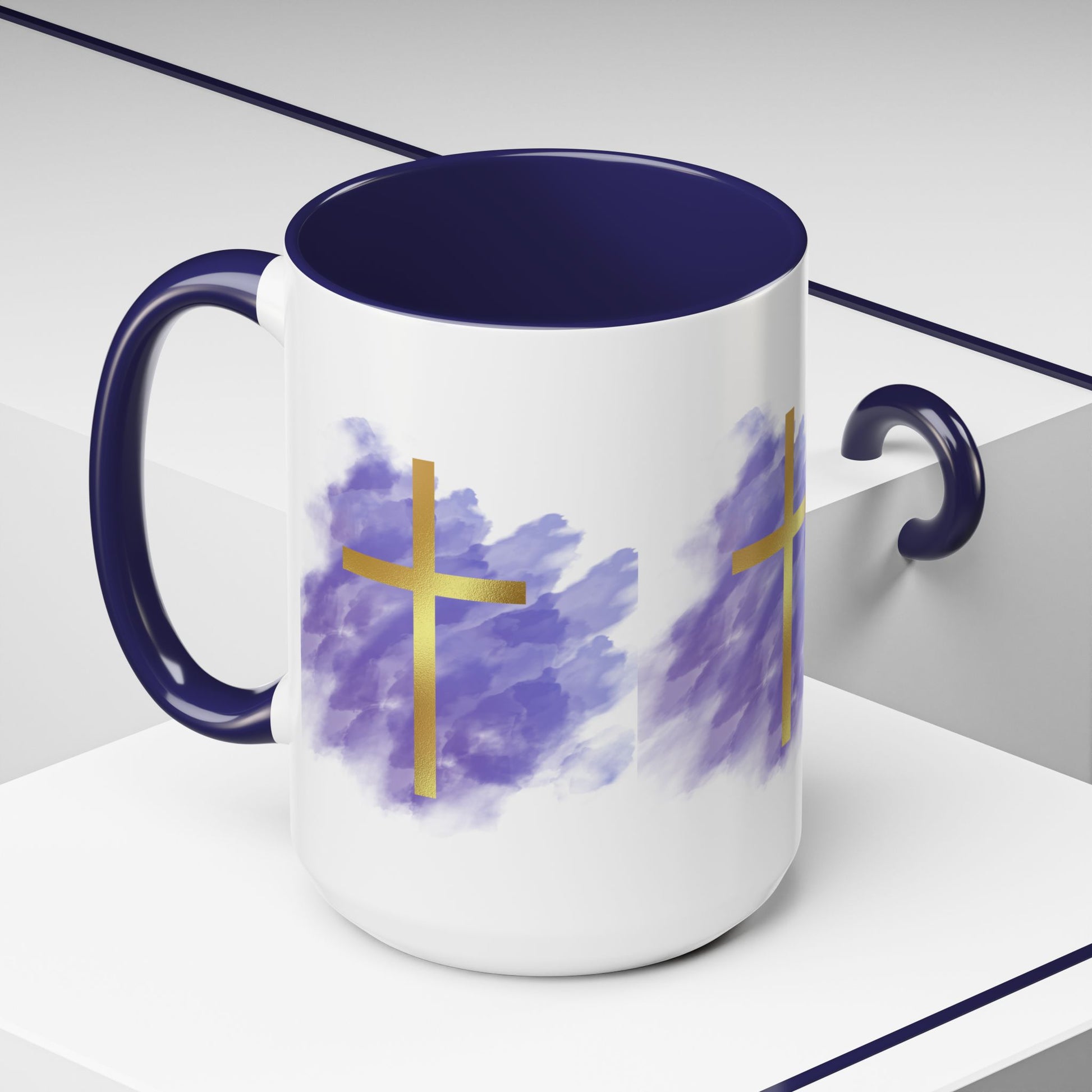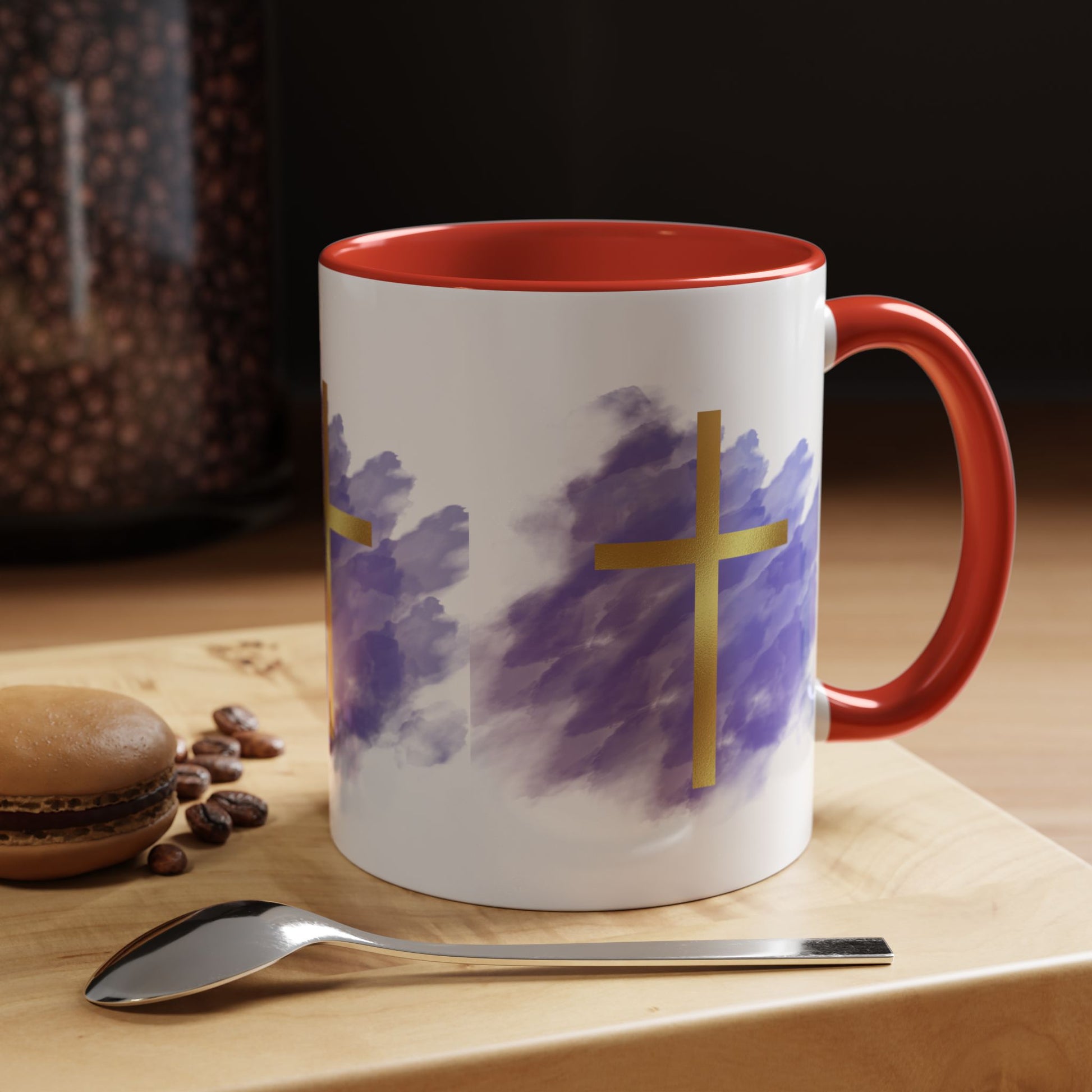 Faith-Inspired Accent Coffee Mug with Golden Cross, Religious Gift for Friends and Family, 11oz 15oz, Inspirational Church Mug, [...]