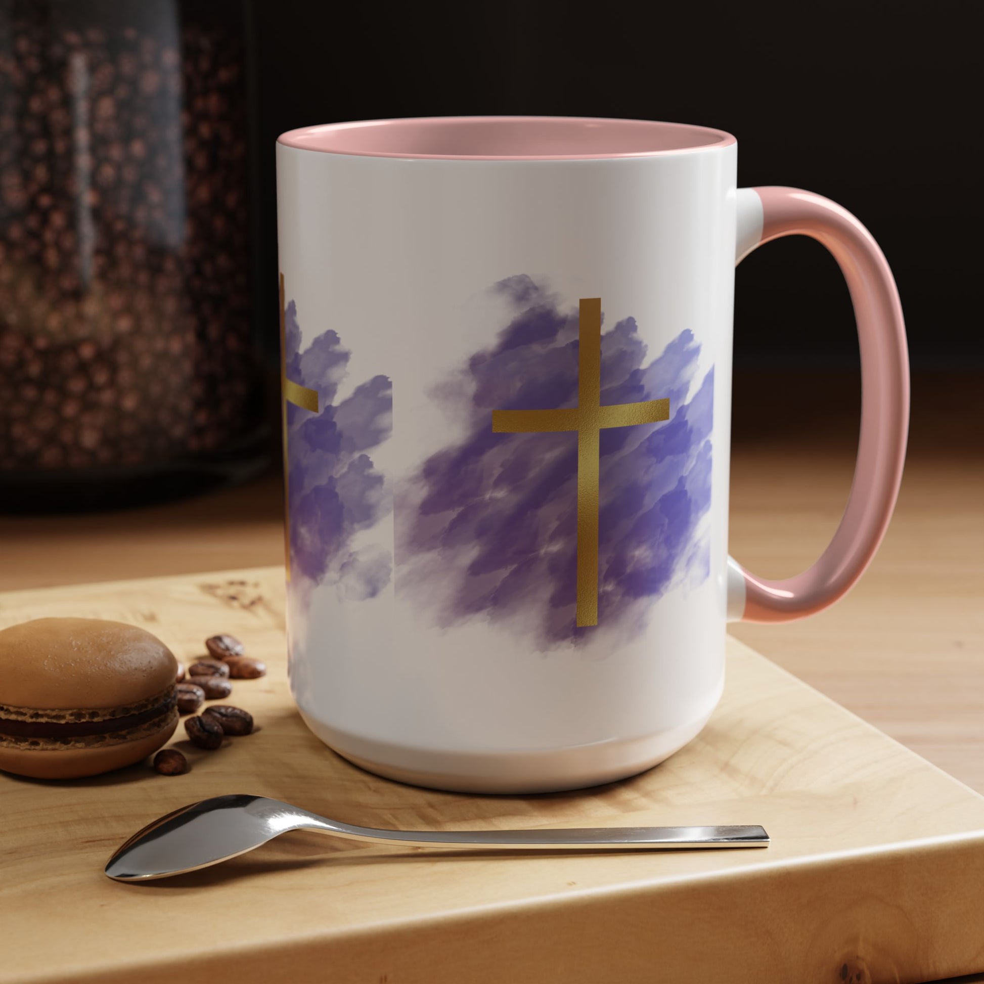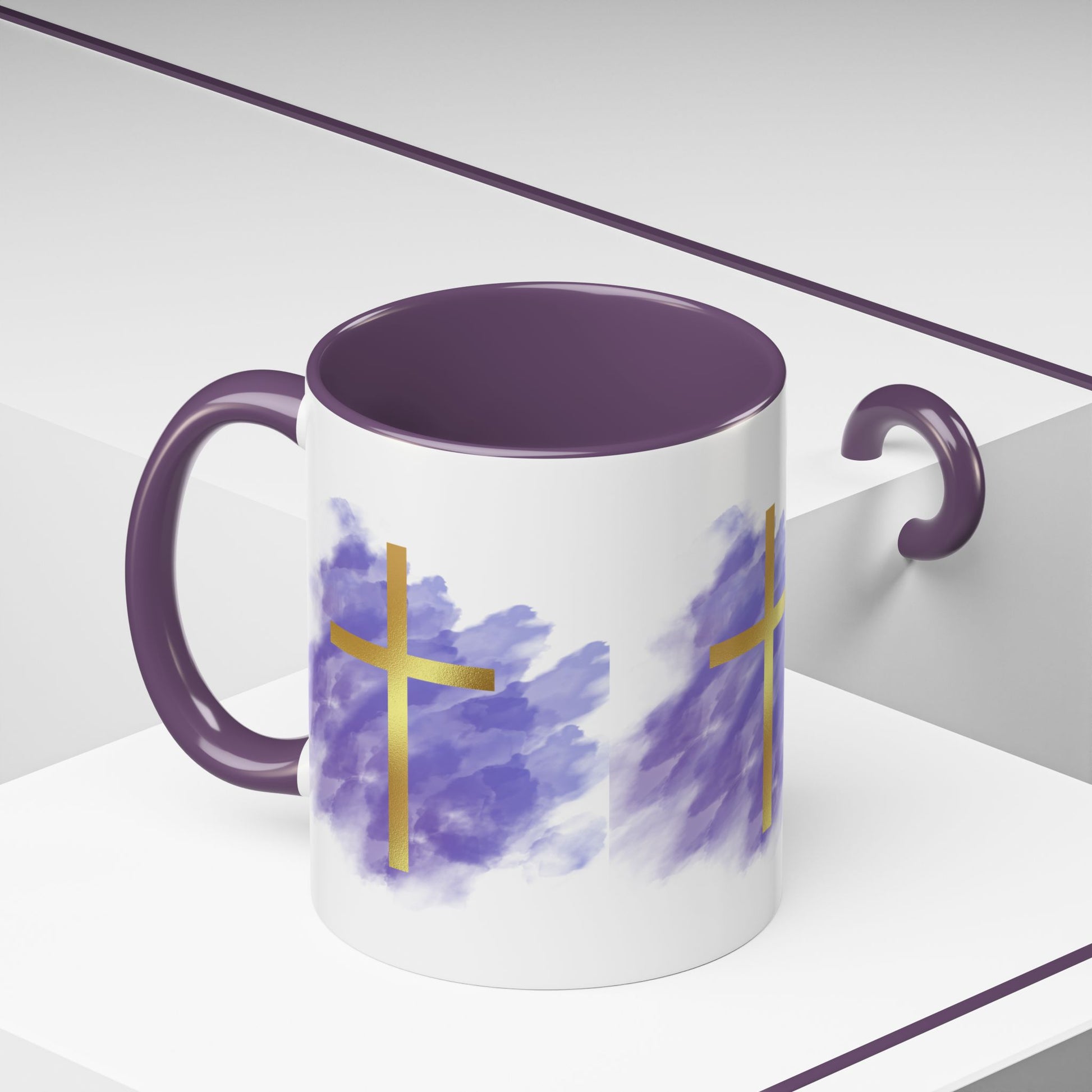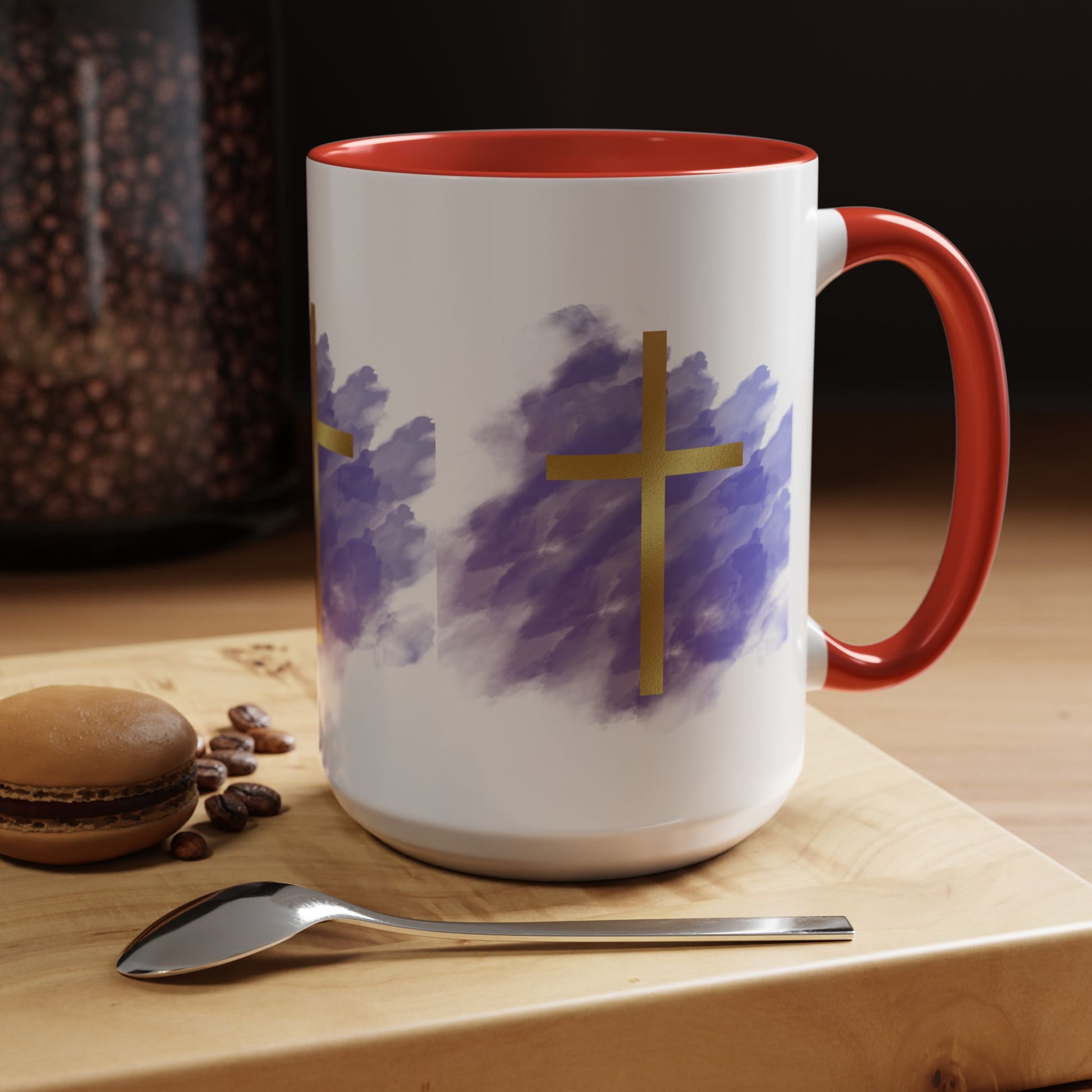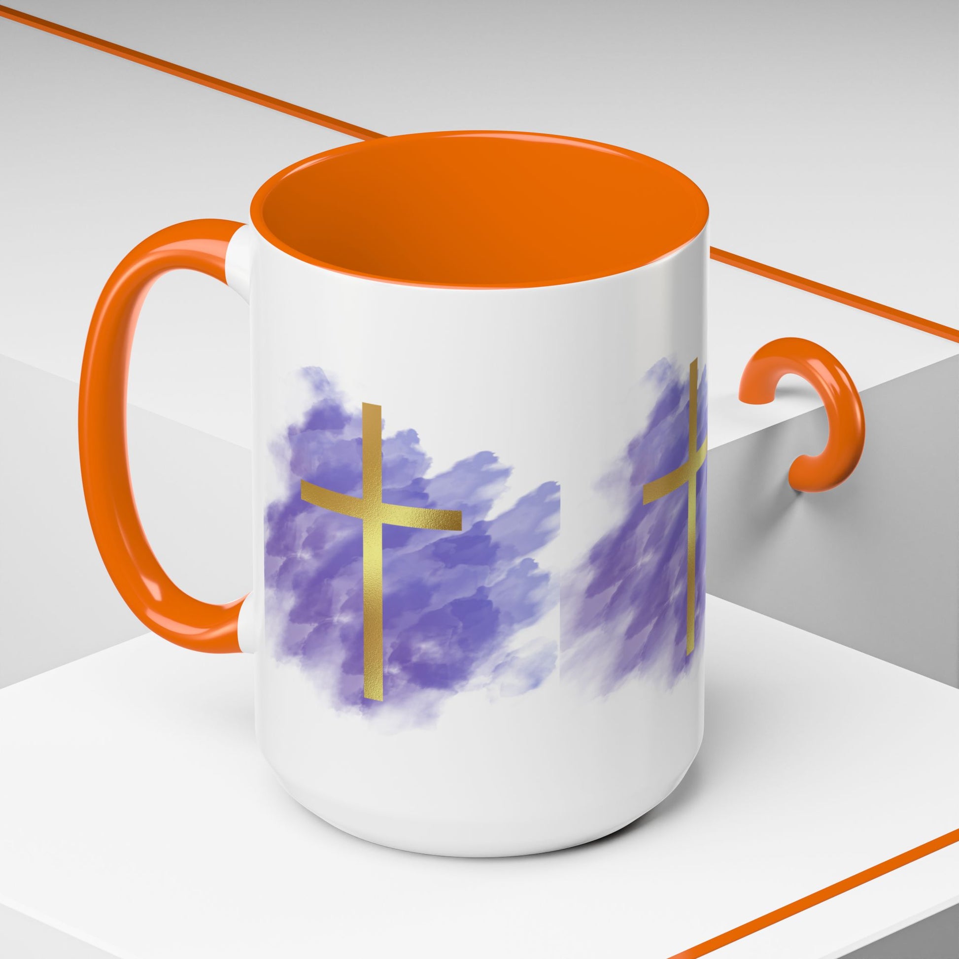 Faith-Inspired Accent Coffee Mug with Golden Cross, Religious Gift for Friends and Family, 11oz 15oz, Inspirational Church Mug, [...]