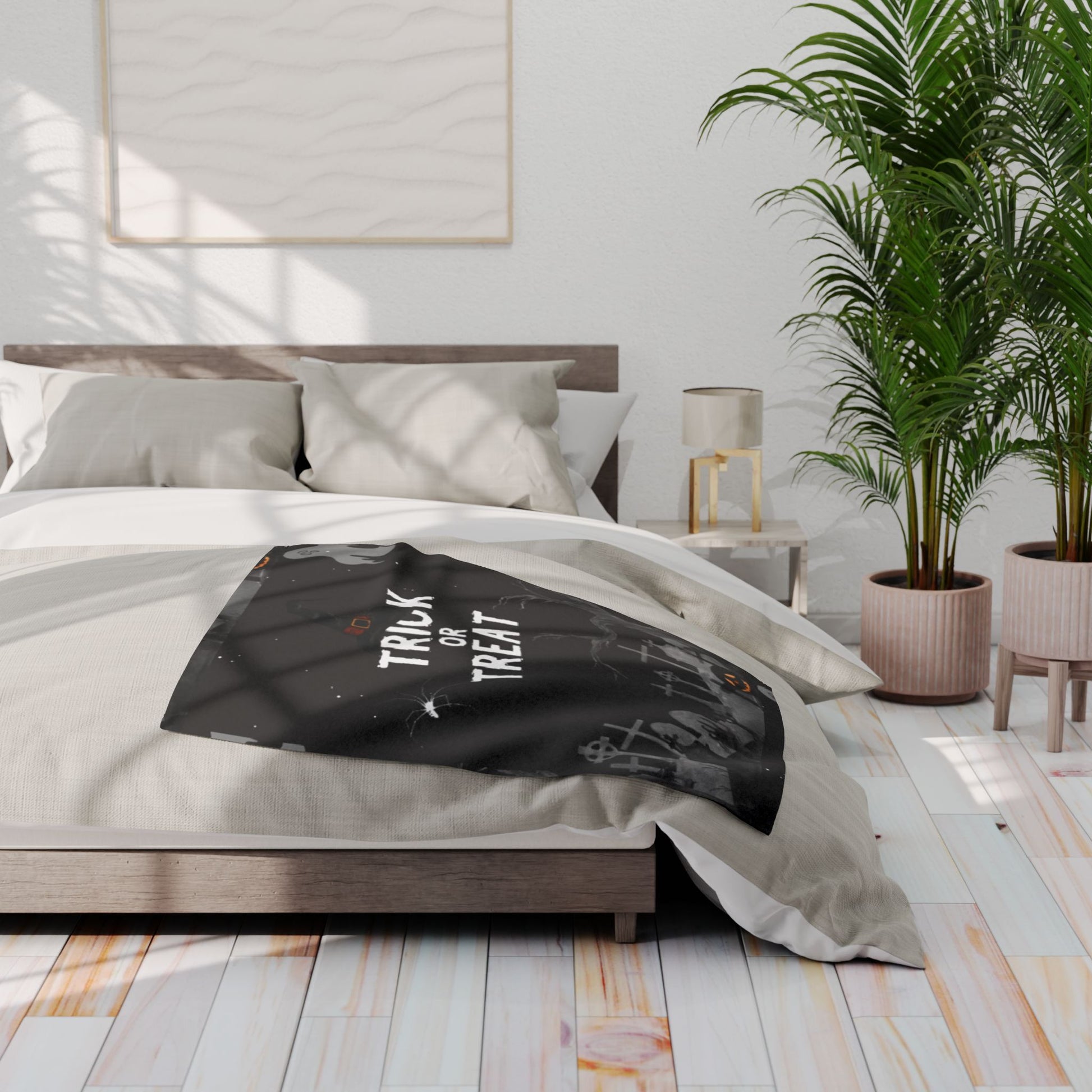 Stay warm this Halloween with this black witch blanket. The spooky design is perfect for Halloween enthusiasts and adds a touch of witchy vibes to your home decor. This thick and soft Arctic fleece blanket is perfect for cozy nights in or Halloween movie marathons. Ideal for adults looking to add a festive touch to their living space during Halloween.