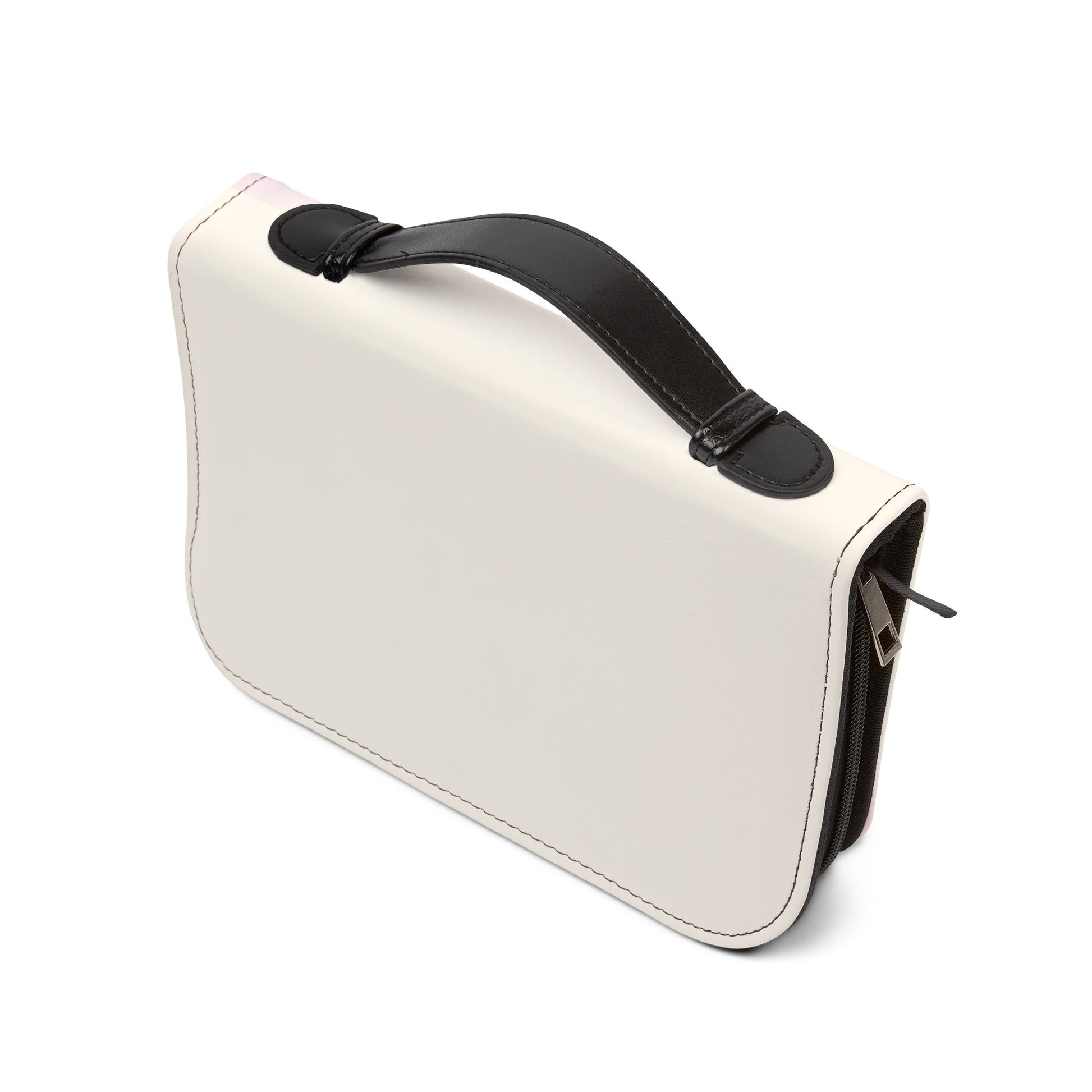 Elevate your Bible study experience with this stylish and functional Bible Cover. Crafted from 100% PU leather, it offers a luxurious look and feel, reminiscent of genuine leather without the ethical concerns. The soft, muted colors and uplifting quote create a peaceful atmosphere, making it the perfect companion for your spiritual journey. Ideal for individuals who cherish their faith, this Bible Cover is perfect for church services, study groups, and personal reflection. It also makes a thoughtful gift for Christmas, Easter, or as a special gesture for a baptism or confirmation.