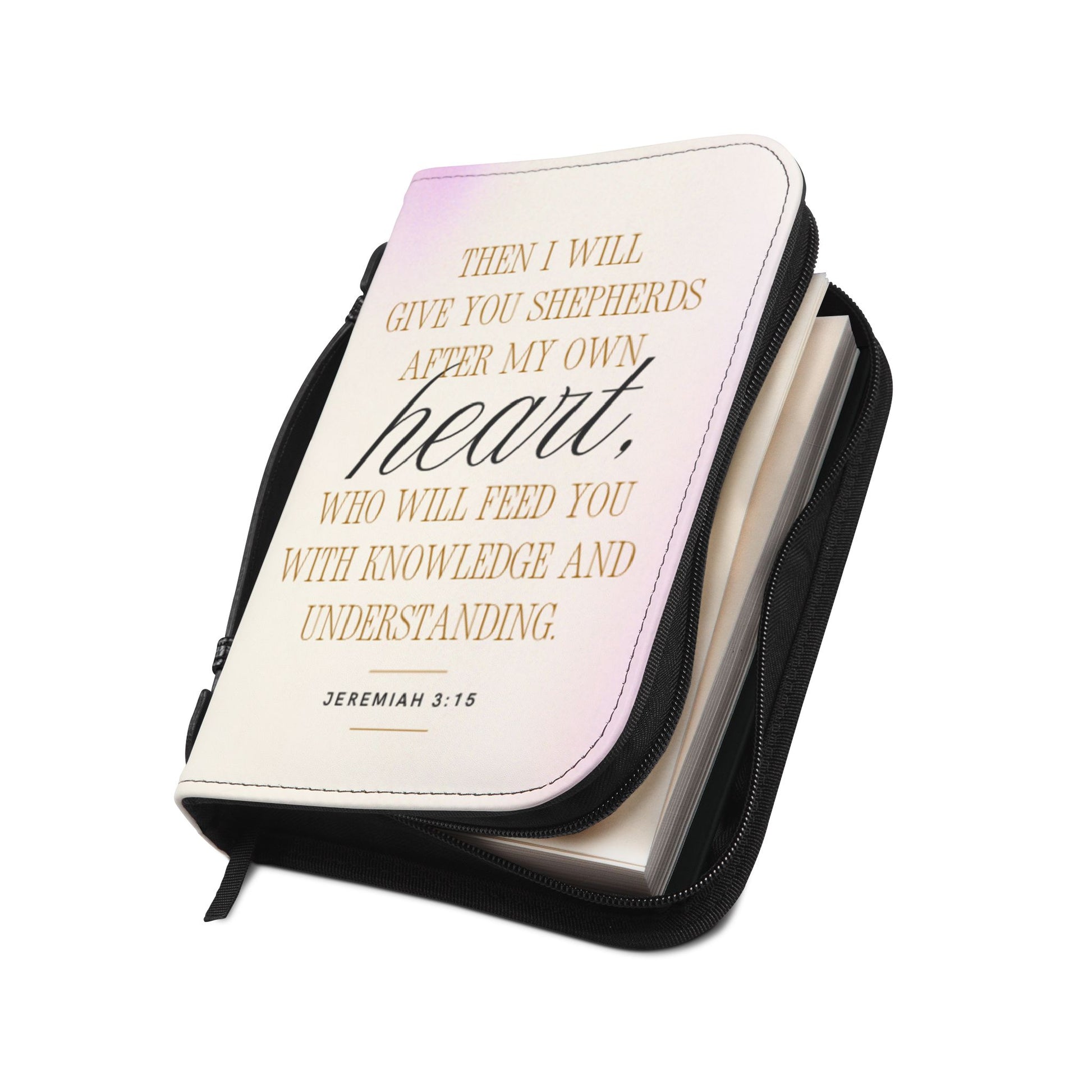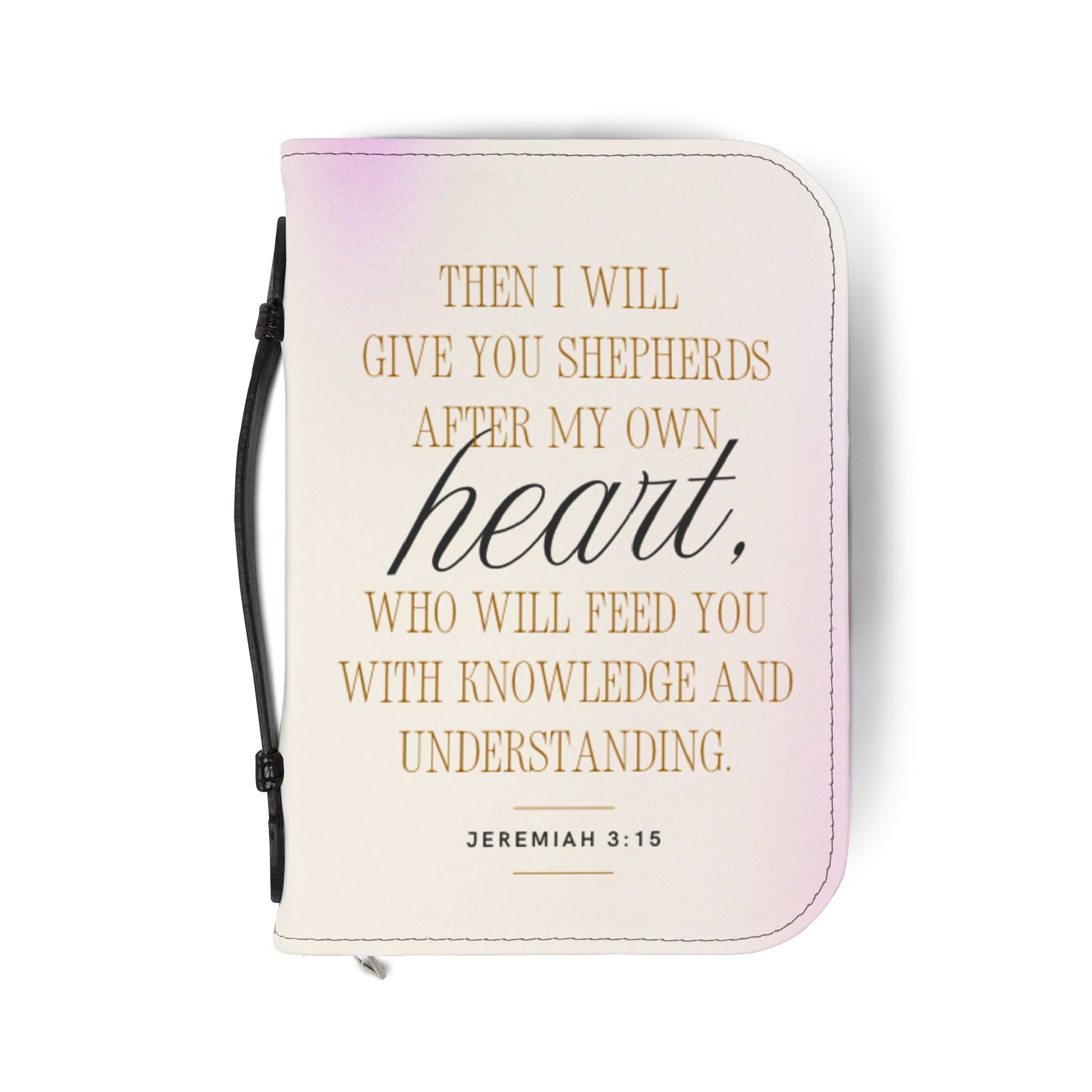 Inspirational Bible Cover for Women, Faith-based Gift for Church, Prayer Journal Holder, Religious Accessories, Jeremiah 3:15 Verse