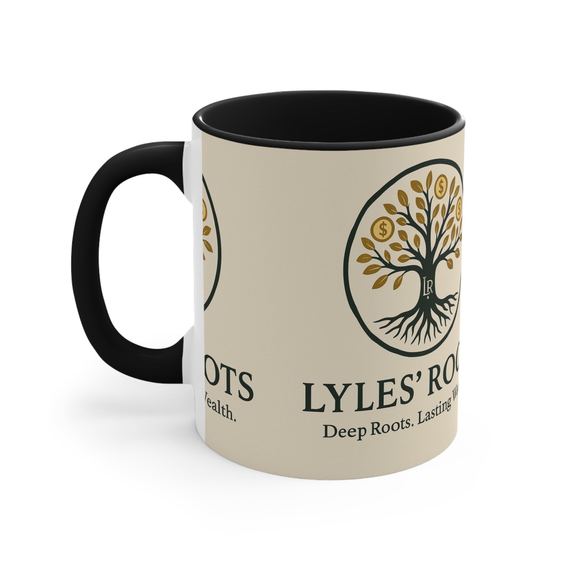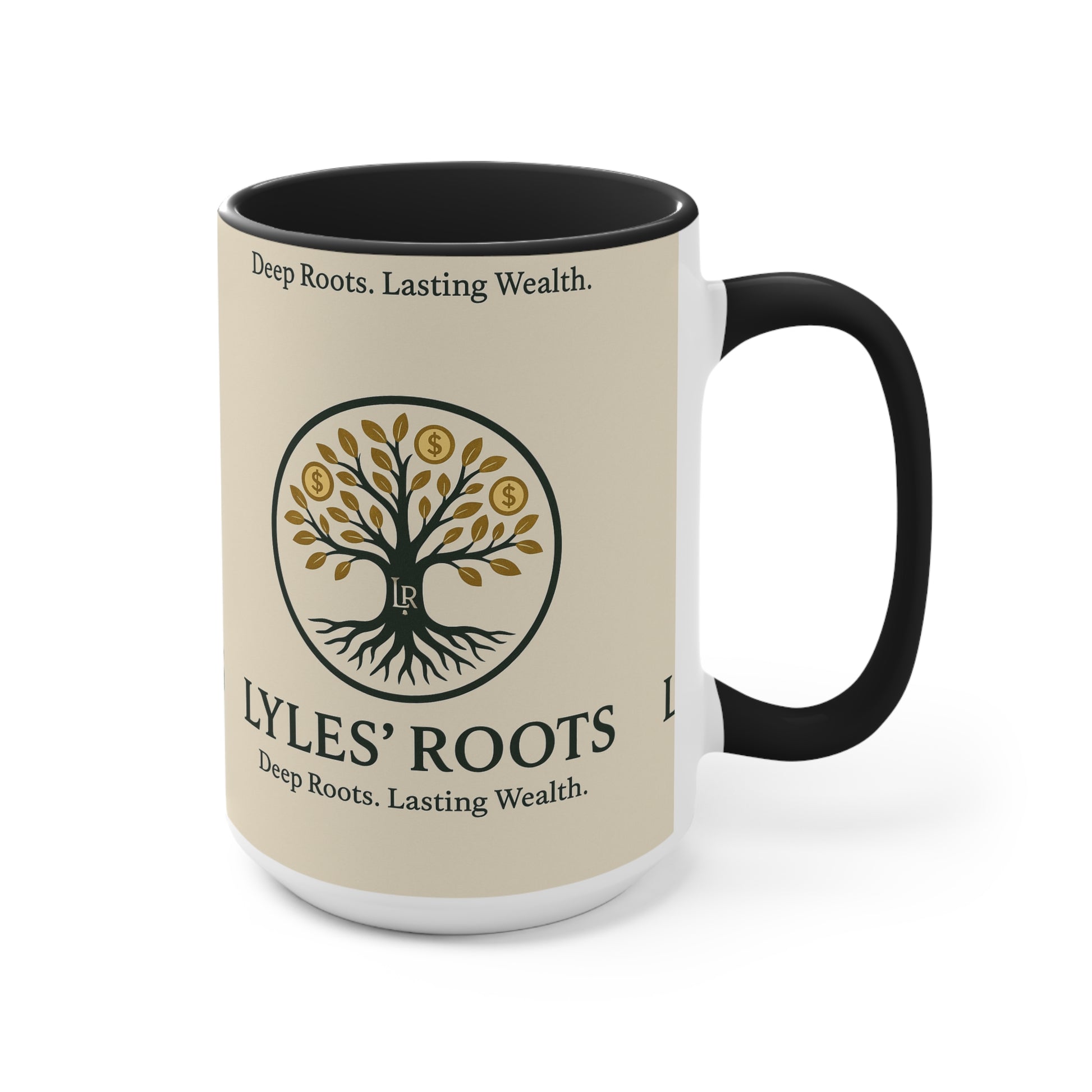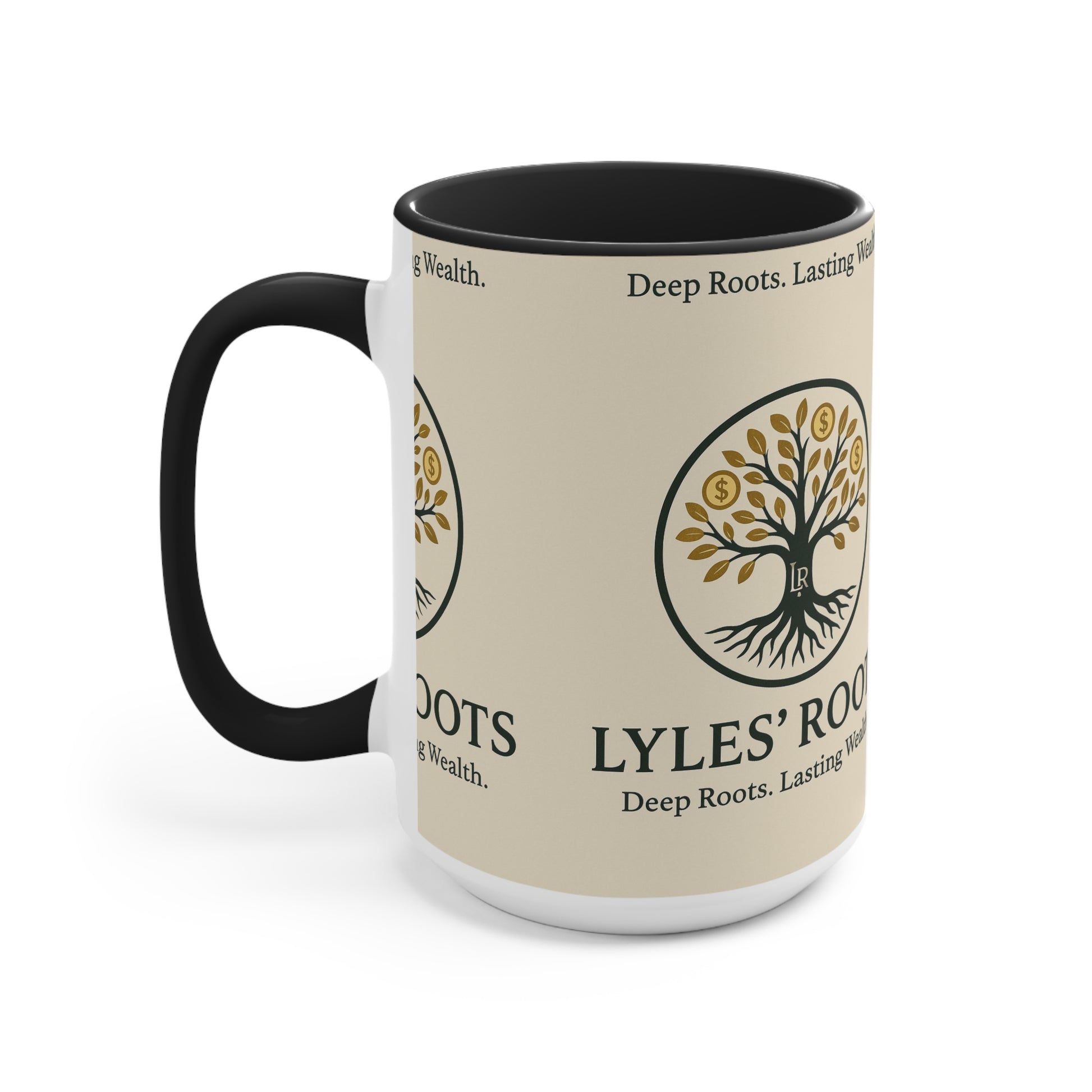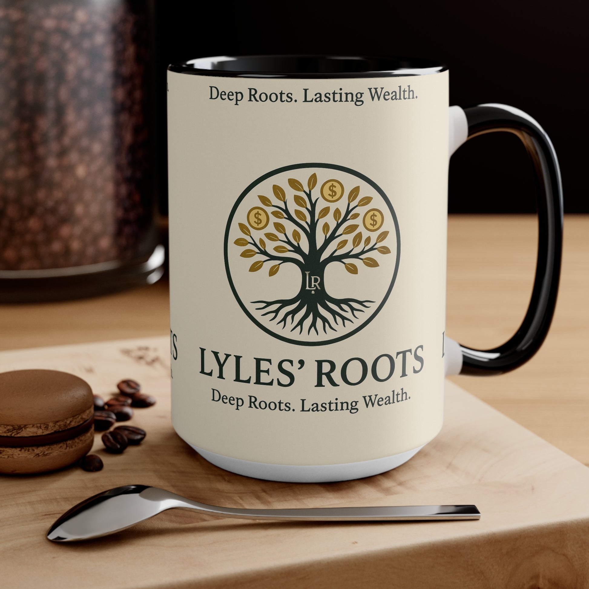 Lyles Roots of Wealth brand Accent Mug - Inspirational Coffee Cup for Financial Freedom, Gift for Entrepreneurs, Office Décor, Motivational Tea Cup